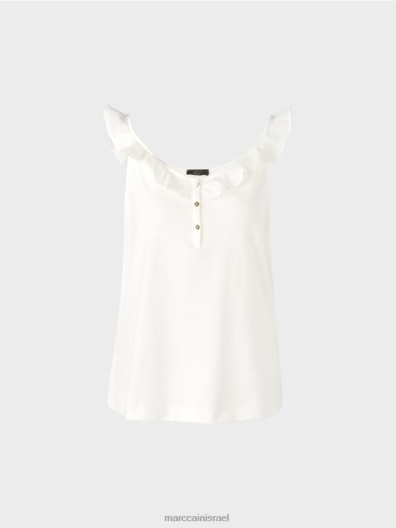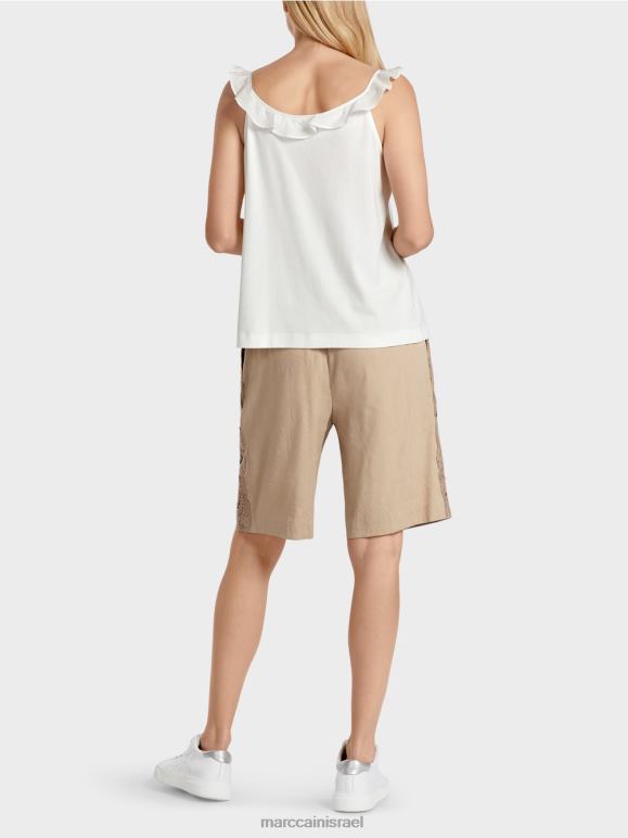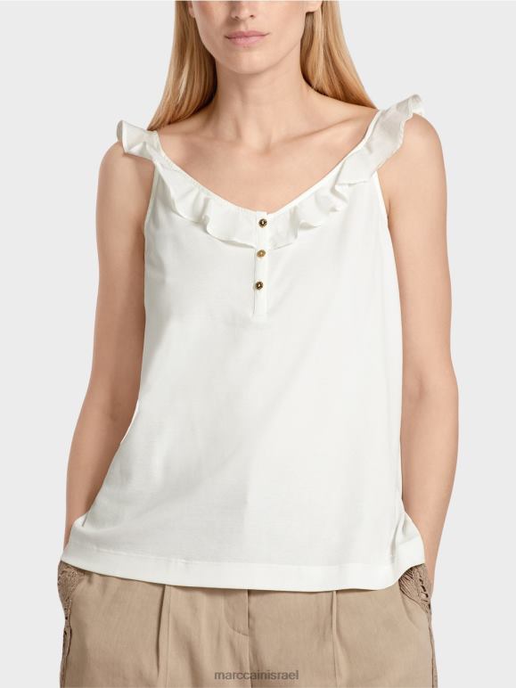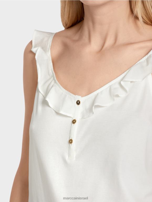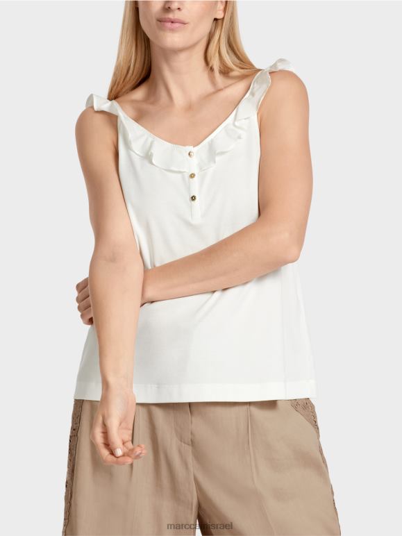 תכונה מרכזית היא הגפן הפועלת כצווארון וגם כרצועה. הוא עשוי מבד כותנה קל משקל ומעניק לחלק העליון אופי אוורירי. כיס הכפתורים הדקורטיבי עם הכפתורים העדינים בצבע זהב הולך בצורה מושלמת עם היצירה הזו.