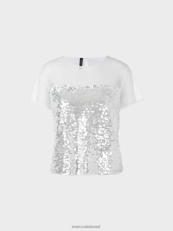 החלק העליון הזה מעוטר כולו בפאייטים. הכתפיים והשרוולים עשויים מבד שקוף, היוצרים ניגודיות בולטת. החלק העליון ננעל מאחור עם כפתור.