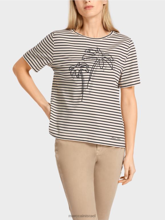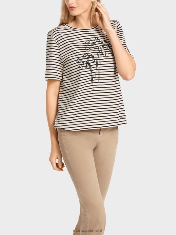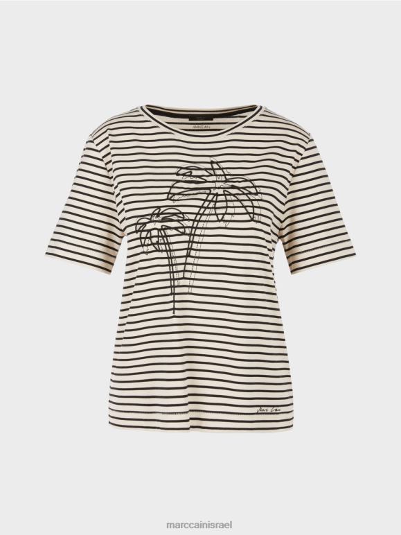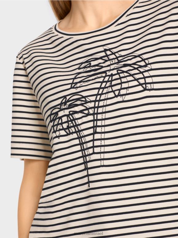 חולצת טריקו מכותנה עטופה ברפיון עם פסים על הכל. מוטיב עץ דקל מיושם בחזית כולל חוט ותפרים רקומים.
