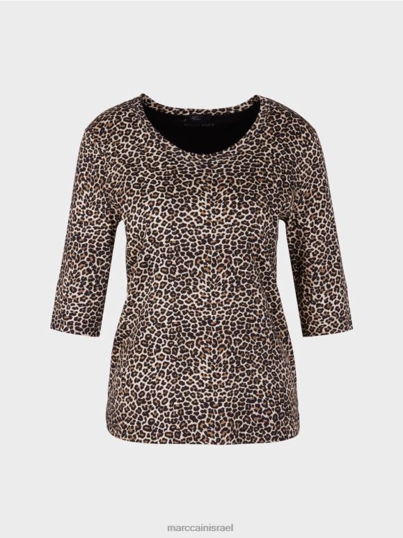 חולצת טריקו זו עשויה מכותנה רכה עם צלעות ומודפסת על כל הגוף בדוגמת נמר. צורת קו ה-A, הצוואר העמוק והמעוגל ושרוולי שלושת רבעי מעניקים לו מגע נשי. הבגד מהווה תוספת מסוגננת למכנסיים דקיקים ומכנסיים קצרים רחבים.