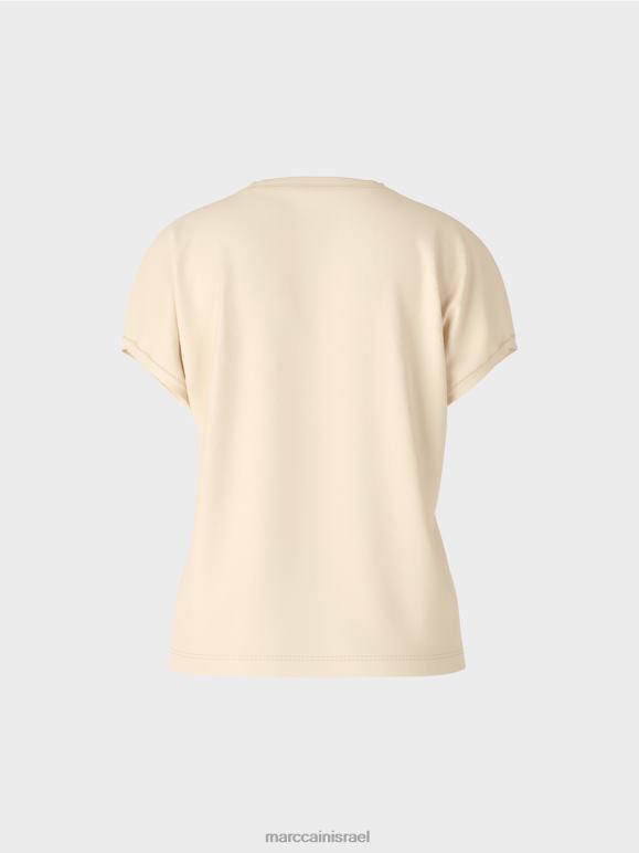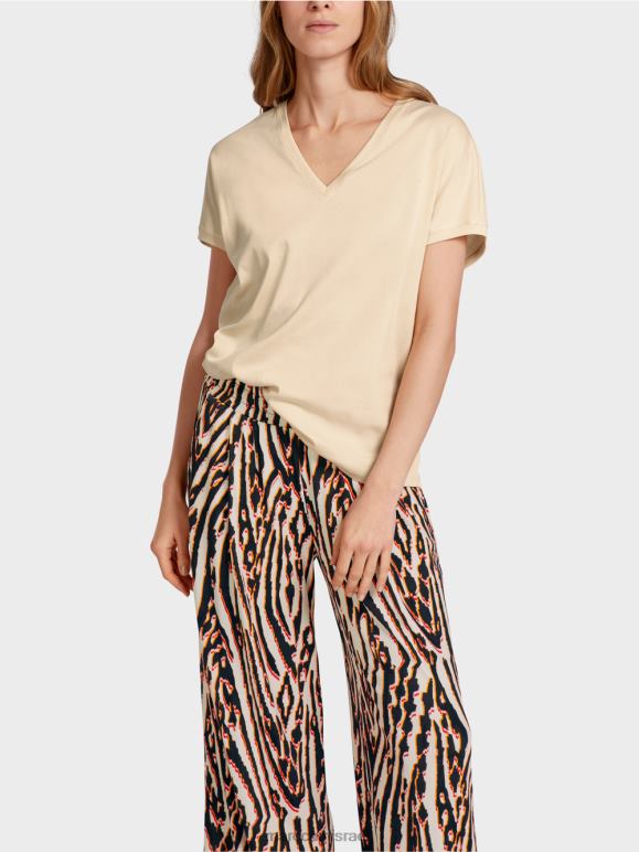 לחולצת הטריקו הזו יש צורה קופסה. הוא מבטיח נוחות לא פשוטה הודות לצווארון ה-V ושרוולי הקימונו הכובע. קו הצוואר והשרוולים משולבים בסריג מצולע רך.