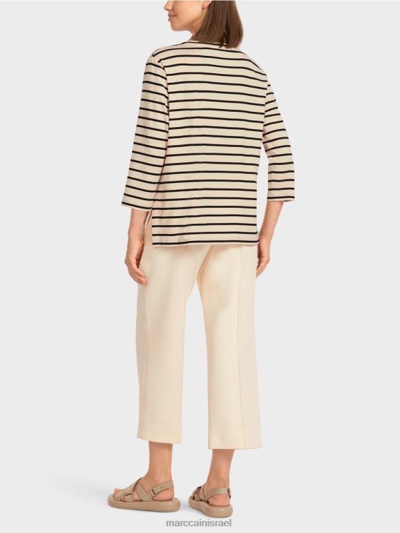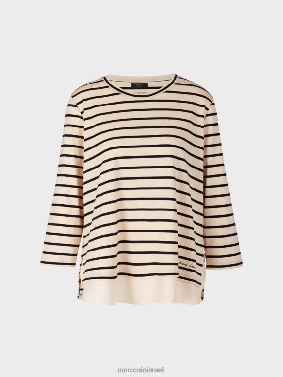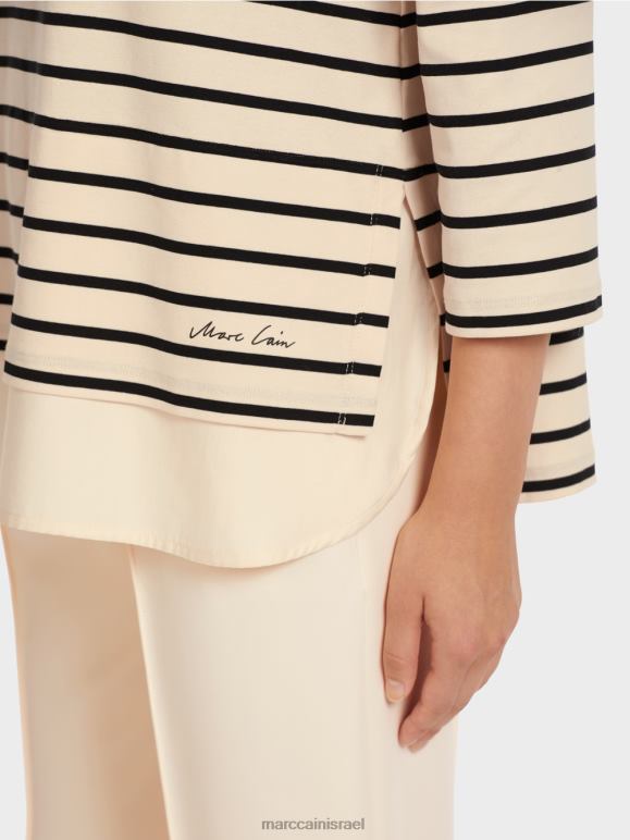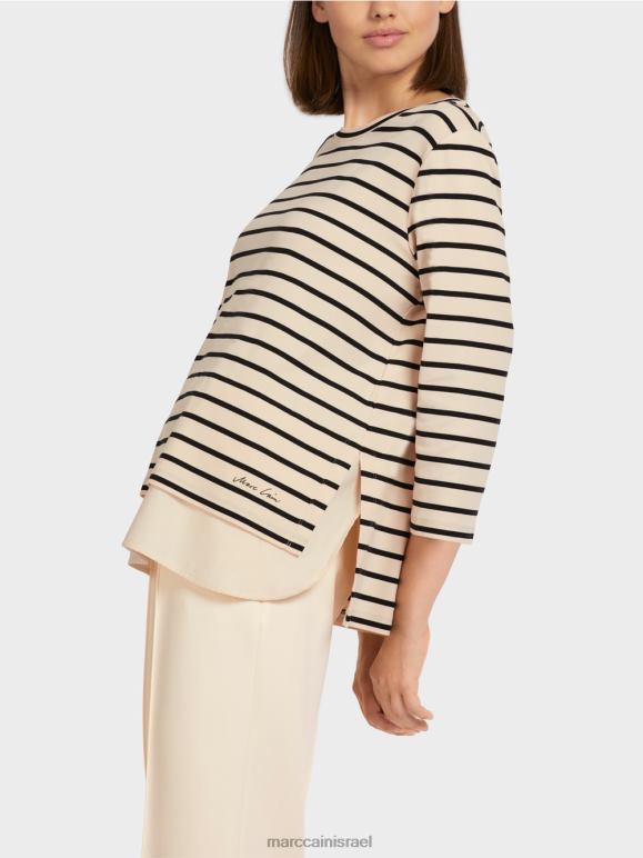 חולצת טריקו קז'ואלית עם צללית נינוחה ואפקט שכבות. חולצת טריקו זו מציגה דפוס פסים ימיים. הוא עשוי מכותנה איכותית עם אלסטן לנוחות נוספת. אפקט השכבות נוצר על ידי פרט בד קטן על חריצי הצד. השרוולים רופפים. העיצוב הושלם עם צוואר צוואר.
