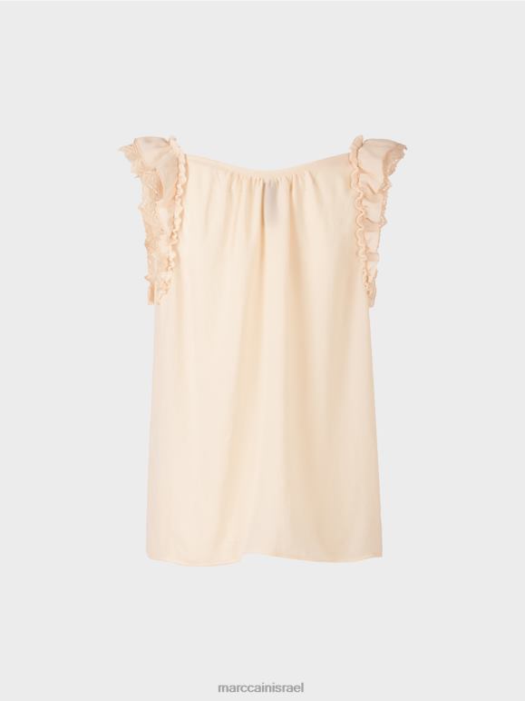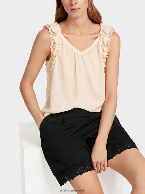 חלק העליון הזה עשוי משיעור גבוה של פוליאסטר ממוחזר ונושא את הקיימות "לחשוב מחדש ביחד" תווית. ניתן להתאים את הרוחב באמצעות איסוף בקו הצוואר. שרוולי הכובע מצופים תחרה. החלק העליון הזה הוא "סרוג בגרמניה". הוא סרוג וגימור בגרמניה תוך שימוש בטכנולוגיה העדכנית ביותר והחלקים הבודדים כמו השרוולים והחזית וכו' נתפרים יחד בחברות השותפות האירופיות שלנו.
