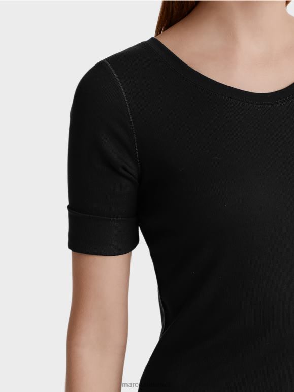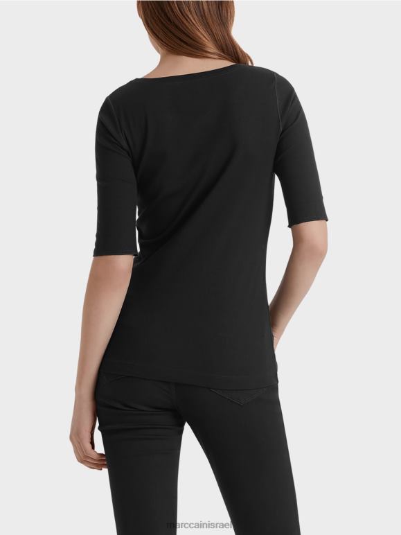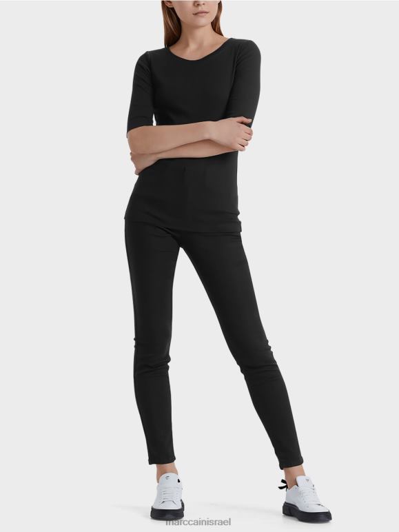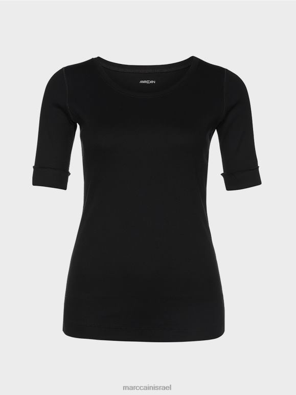 מראה עם צלעות עדינות משולב בחולצה זו של Marc Cain עם תערובת כותנה רכה במיוחד, יחד עם הפרופורציה הנכונה של חומר מתיחה בדיוק. תפרי אוברלוק בגוון על השרוולים מעניקים לפריט הבסיסי המתאים מעט מגע מגניב. סגנון שישלים מראה קז'ואל בצורה נינוחה.