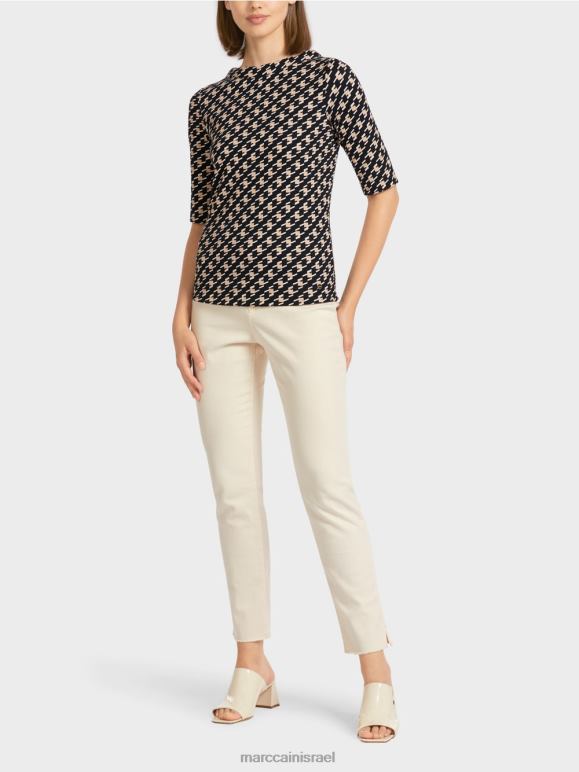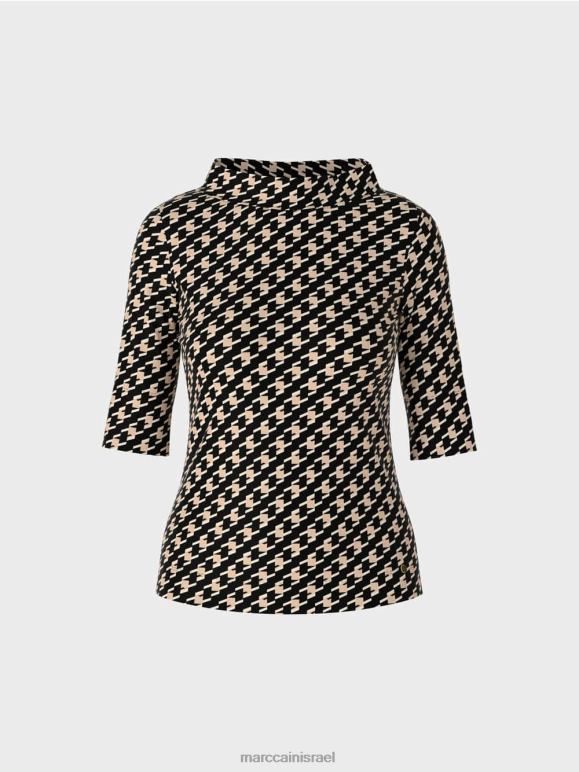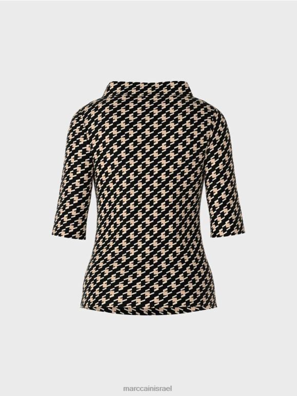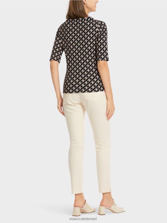 חולצת טריקו אקסטרווגנטית עם צללית חובקת דמות מבד כותנה רך עם אלסטן. חולצת טריקו זו מעוטרת במשבצת רועים. הוא כולל שרוולים באורך שלושה רבעים שניתן להפשיל כלאחר יד. צווארון רחב מסיים את המראה.