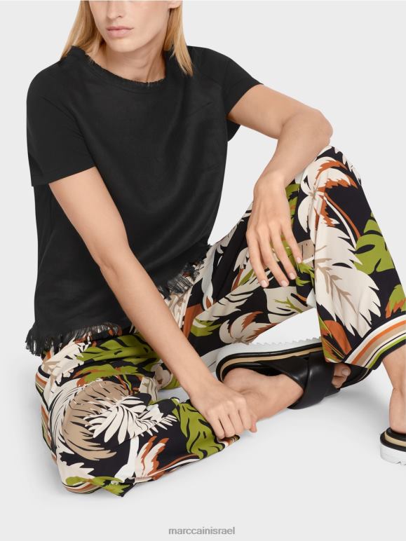 חולצת טריקו זו משלבת נוחות לא פשוטה עם אלגנטיות של חולצה. החלק האחורי והשרוולים עשויים בג'רזי מצולעים, בעוד הקדמי בפשתן. קלילות החומר מודגשת על ידי חלקי השוליים בשולי המכפלת ובקו הצוואר.