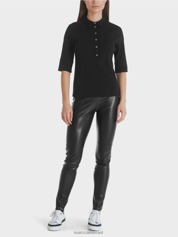חולצה בגזרה ישרה עם צווארון פולו וכיסום כפתורים ארוך שניתן לסיים עם כפתורי לוגו מנצנצים. חולצת הפולו עשויה מג'רסי מצולע כותנה אלסטית לנוחות הלבישה הטובה ביותר. ניתן להפשיל את השרוולים בחצי אורך כלאחר יד.
