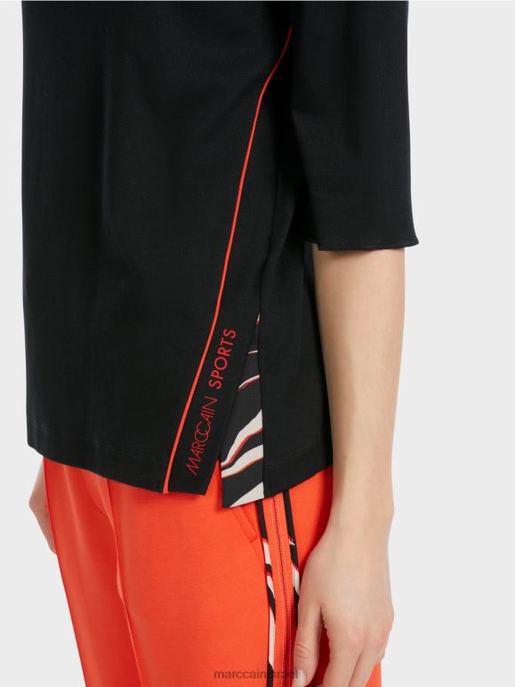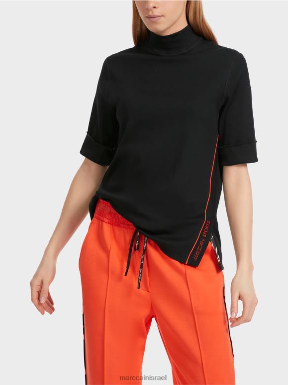 החולצה בעלת גזרה דקה ועשויה מג'רזי צלעות גמיש. ההיבט האופנתי מגיע דרך השרוולים והצווארון העמיד. באופן מפתיע, העיצוב הא-סימטרי. התפר בצד שמאל מעוצב עם צנרת ניגודית, חריץ צדדי עם עיטור בדוגמת המילים 'מארק קין ספורט'.