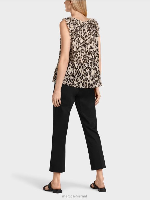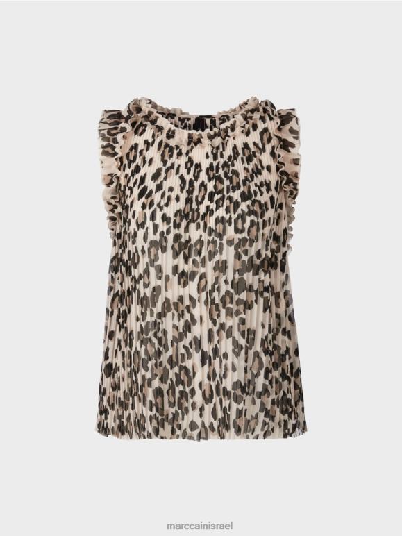 החלק העליון מקופל במלואו. גם השרוול וגם קו הצוואר גזוזים עם סלסולים. החומר קל ורך ומרגיש עדין על העור. החלק העליון עם חזית פתוחה וקל להלבשה.
