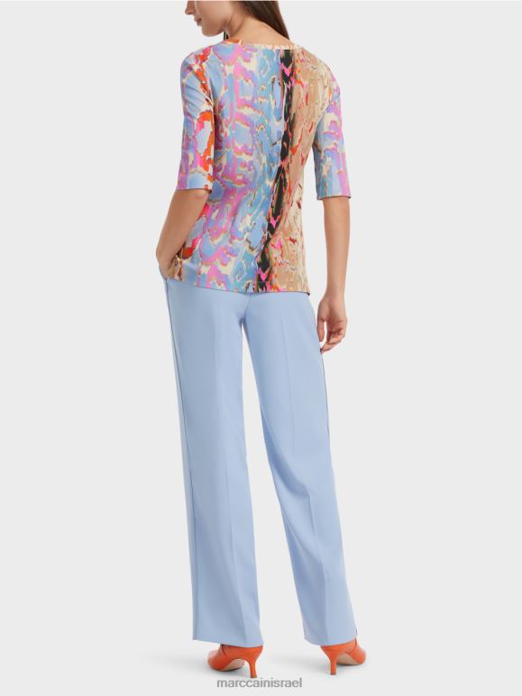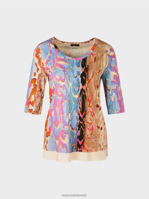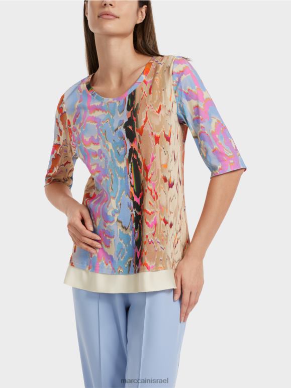 חולצת טריקו מחויטת מכותנה ואלסטן. לוכד העין של הטי שירט הזה הוא ההדפס הצבעוני. הוא גם מקבל ציון גבוה עם צווארון רחב ועגול. השרוולים באורך חצי. חריצי צד מספקים התאמה נוחה.