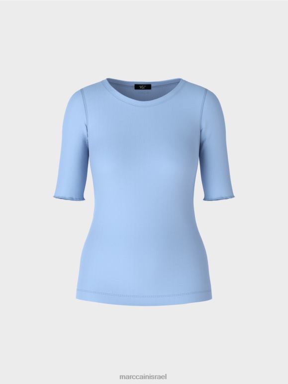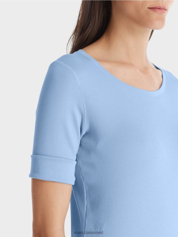 החולצה עשויה צלעות כותנה גמישות וחתוכה קרוב לגוף. העיצוב הנשי מוגדר על ידי שרוולים ארוכים וקו צוואר מורחב מעט. הצוואר העגול של הטי-שירט הוא קצוות, שולי השרוולים פתוחים וניתנים לקיפול.