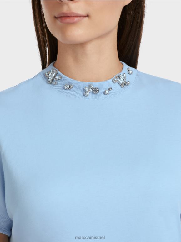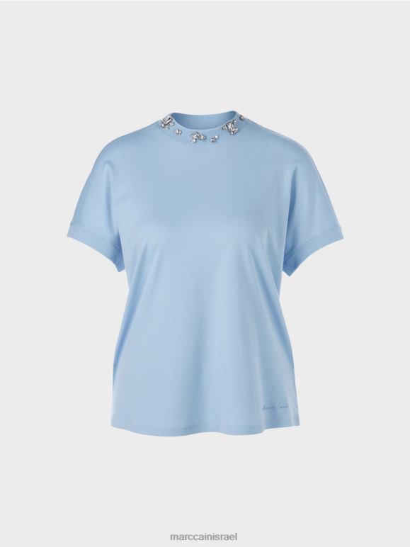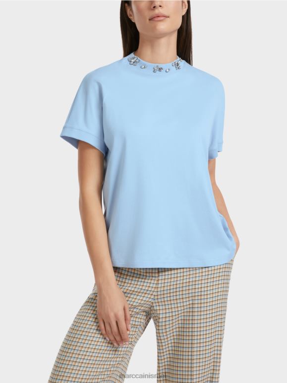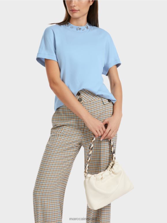 חולצת טריקו רפויה עשויה כותנה. לוכד העין של חולצת הטריקו הזו הוא רקמת החרוזים המבריקים על הצווארון הניצב. העיצוב עם שרוולים חתוכים הוא יוצא דופן באותה מידה. הצללית הישרה מביאה מנה של נינוחות לחלק העליון הנשי הזה.