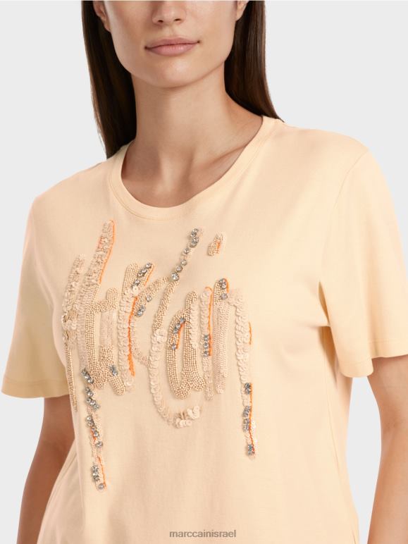 פאייטים וחרוזים באותיות מרק קין שובבות הם סימני ההיכר של חולצת טריקו אקסטרווגנטית זו. הוא עשוי מכותנה טהורה ויש לו צוואר עגול רחב. רבעי שרוולים וצללית נינוחה מדגישים את הסגנון הספורטיבי.