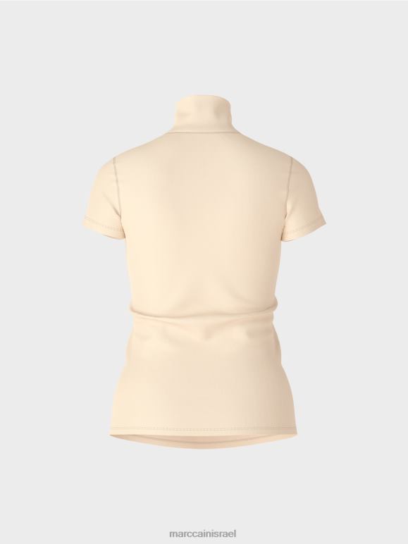 חולצת טריקו עשויה כותנה ג'רזי. הצווארון, המחורץ בחזית, הוא תכונת עיצוב יעילה. זה מאפשר ללבוש אותו עם צוואר גבוה או מקופל. הניגודיות בין צווארון הצווארון הגבוה לשרוולים הקצרים בצורה מודגשת מגניב מאוד.