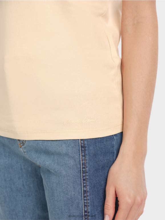 עשויה מתערובת בד נוחה עם כותנה ואלסטן, חולצת טריקו זו נעימה גם בזכות צווארון גליל עם כפתור דקורטיבי. פרטי חולצה אופייניים הם שרוולים באורך רבע. החלק העליון נחתך קרוב לדמות וכולל כיתוב מארק קין בשולי.