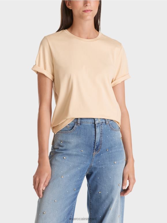חולצת טריקו עשויה כותנה עם תכולת אלסטן. הטי הצבעוני הפשוט הזה מגיע עם צווארון רחב מעוטר רקמת זיגזג סתמית. בנוסף, החולצה מעט צמודה ובעלת גב מורחב. שרוולים באורך רבע משלימים את העיצוב.