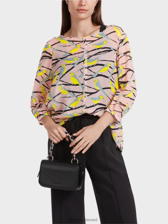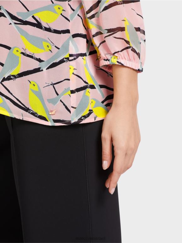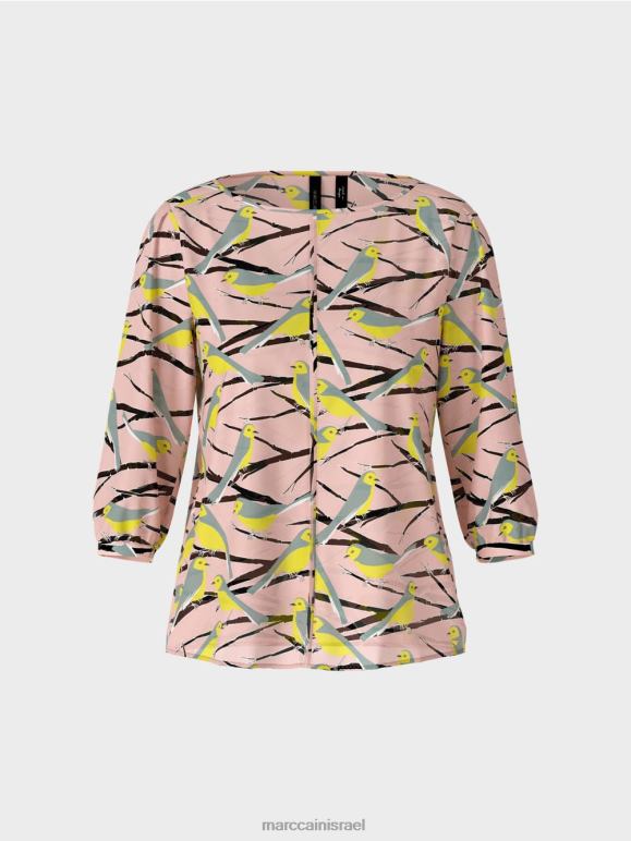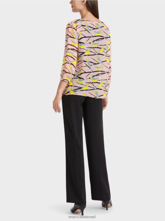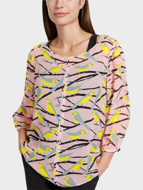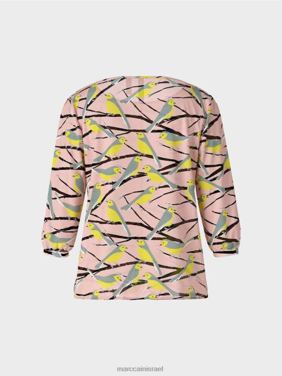 חולצת ויסקוזה נופלת ברכות בגזרה נינוחה, עם תפר מרכזי. עיצוב הציפור השובב נותן לחולצה הזו מגע מיוחד. השרוולים הרחבים מעוטרים בחפתים צרים. את העיצוב משלים צוואר עגול גדול.