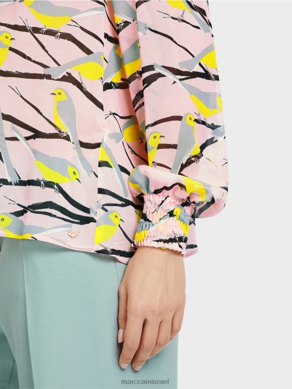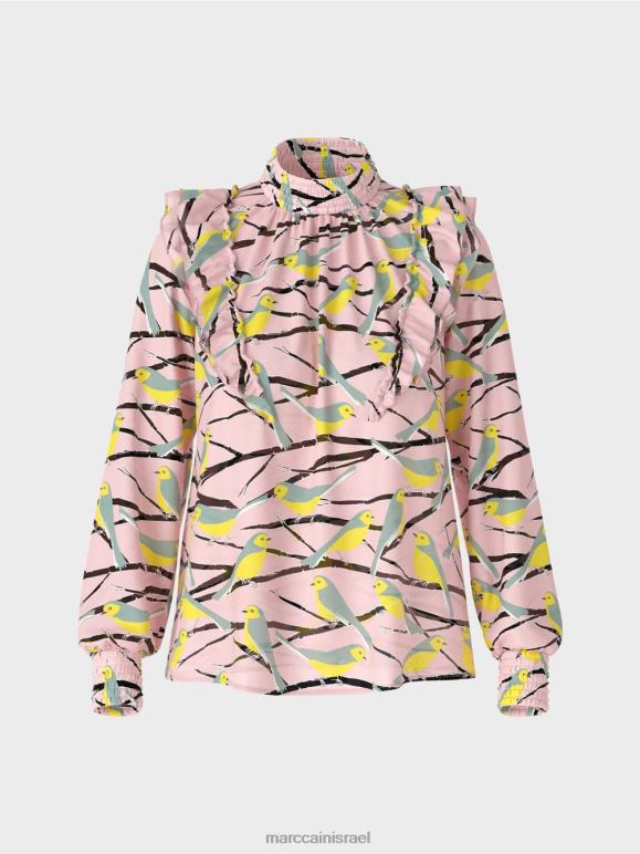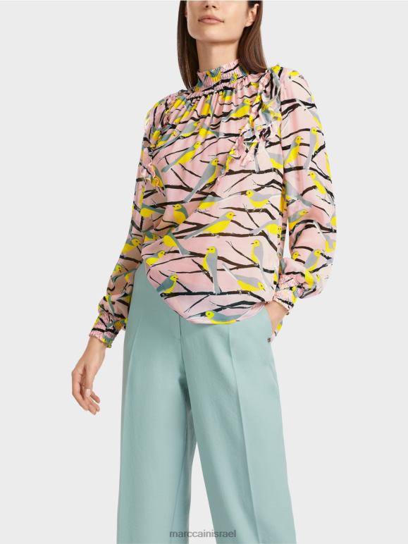עם עיצוב הציפורים האקזוטי שלה, החולצה הזו היא גולת הכותרת בכל תלבושת. במיוחד מכיוון שהוא מגיע גם עם צווארון סטנד-אפ מעוטר, כמו גם עם שרוולים מעוטרים. פרטי סלסול מדגישים את המראה השובב. החלק העליון בעל צללית רחבה והוא מותאם מוויסקוזה נוחה.