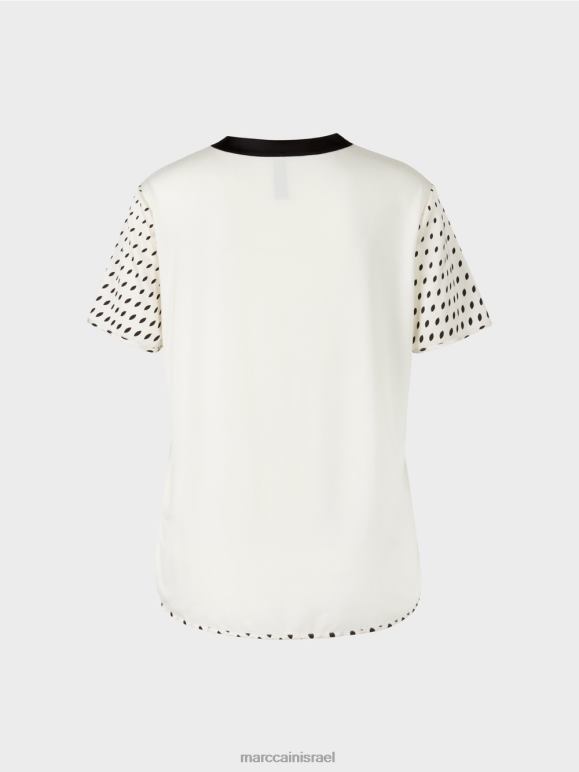 חולצת החולצה מציגה את עצמה עם שילוב דפוסים של פסים ונקודות. שולי חולצת החולצה מעוגלים וקו צוואר ה-V מעוטר בגזרה דקורטיבית קטנה. הגב הפשוט מוארך מעט ועשוי מסיבי במבוק.