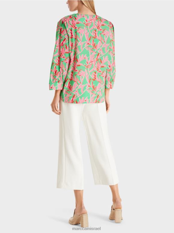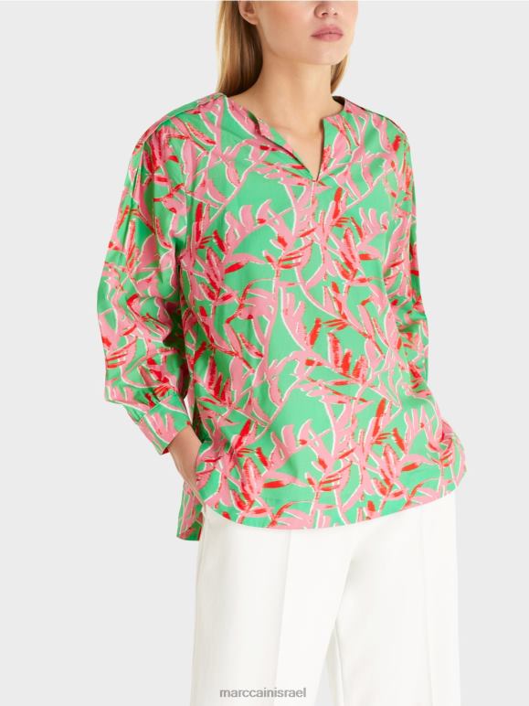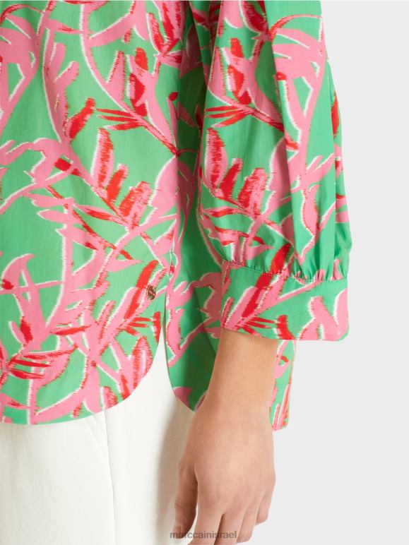 חולצה ישרה מכותנה טהורה. לחולצה הזו יש דפוס פרחוני. יש לו חתך ישר שמתרכך על ידי חריצי הצד המעוגלים והגב הארוך יותר. צווארון V קל נותן הצצה דיסקרטית של הדק. שרוולים מחושלים משלימים את העיצוב.