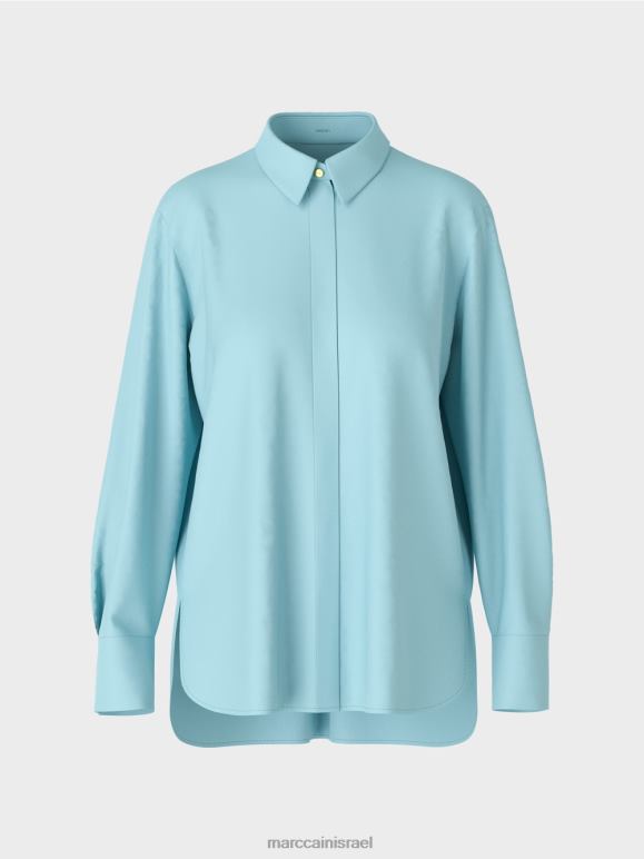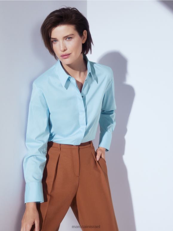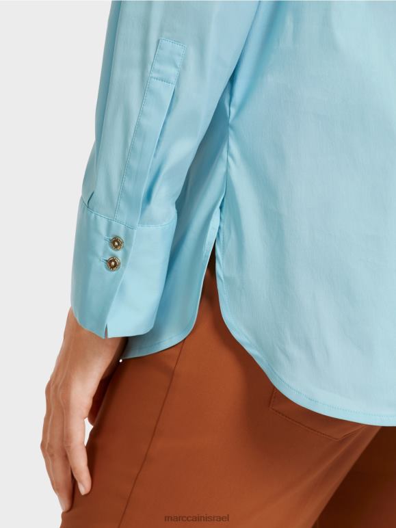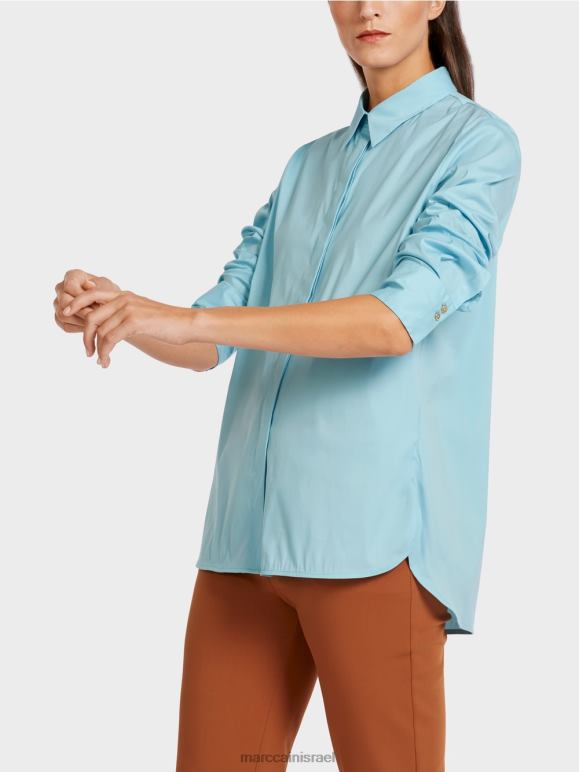 חולצה אלגנטית בתערובת כותנה עם אלסטן. שיק ועם זאת נינוח, חולצה זו משלבת סגנונות לבוש שונים. הוא כולל כיסום כפתורים סמוי, צווארון חולצה טיפוסי ושרוולים מחושלים, כל אחד עם שני כפתורים מבריקים בצבע זהב עם כיתוב Mc. זה מרגיש נינוח עם חתך ישר, חריצים בצד וגב ארוך יותר. קפל הקופסה מאחור מבטיח שהוא נוח ללבישה.