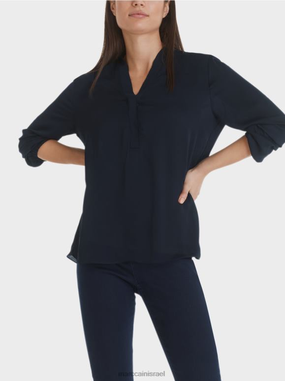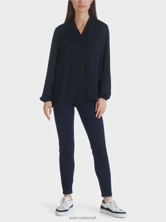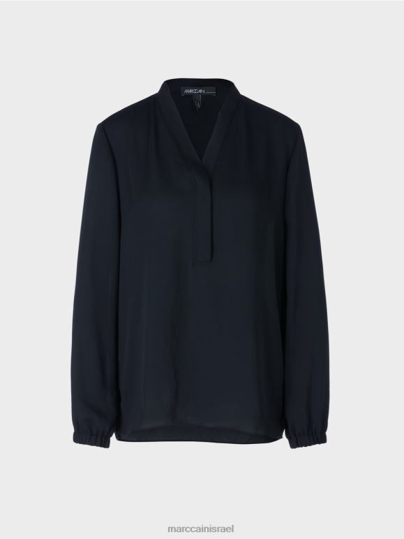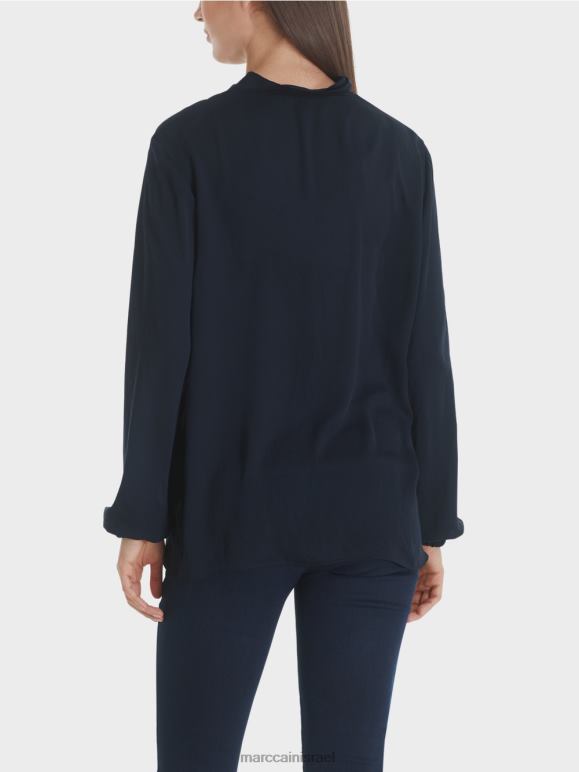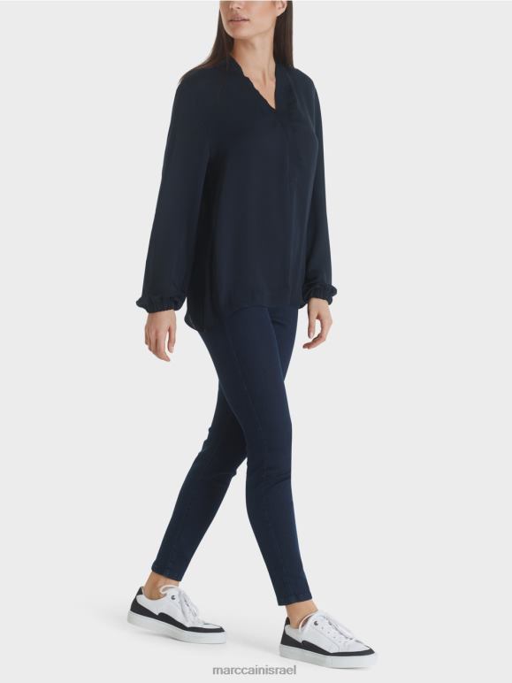 חולצה לא מסובכת עשויה מאיכות מיקרופייבר נשפכת ומנצנצת מעט, עם שרוולים ארוכים. החולצה הרחבה מעוטרת בקו הצוואר בקצוות גדושים כפולים וחתוכים המעניקים לעיצוב מראה נשי. רצועה אלסטית משולבת בחפתים.