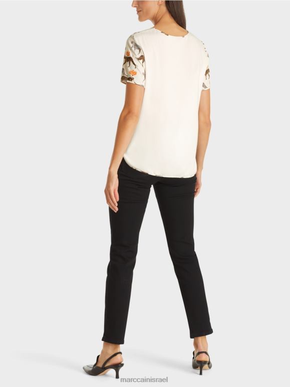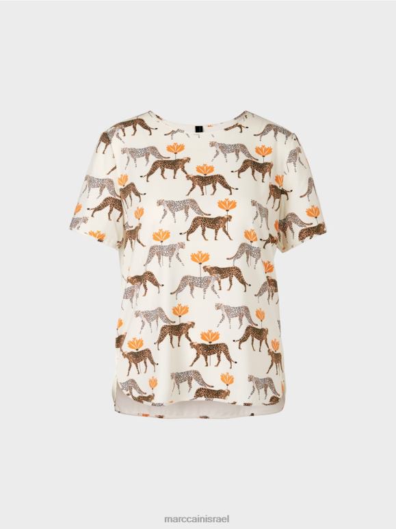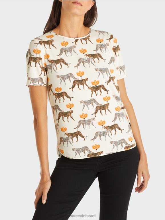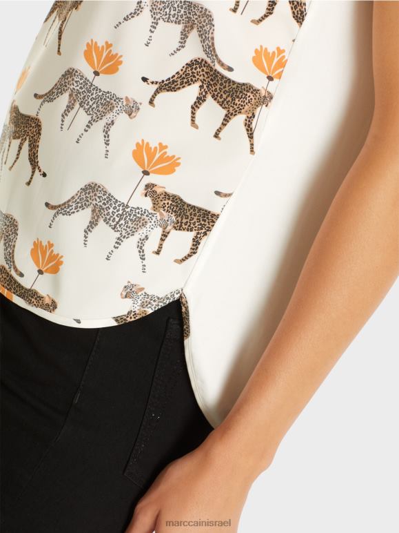 חולצת החולצה מודפסת עם נמרים קטנים בגוונים שונים של צבע. הודות לחומר קל המשקל עם תכולת אלסטן, החולצה מציעה נוחות לבישה נעימה. המכפלת מעוגלת והגב הפשוט מוארך מעט ועשוי מסיבי במבוק.