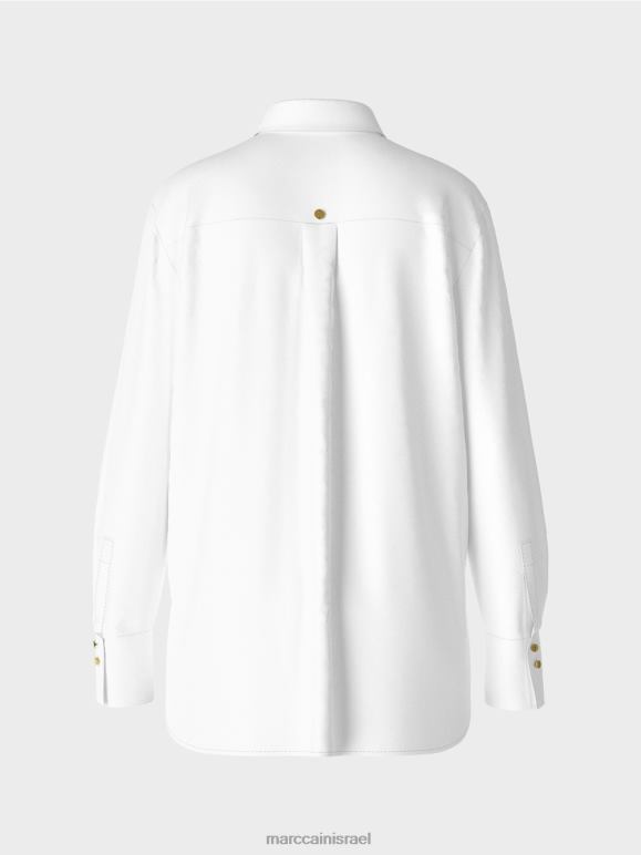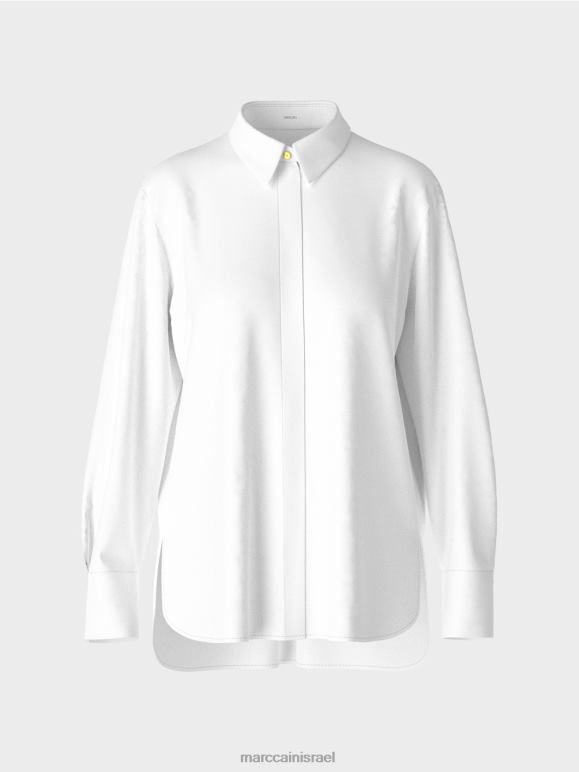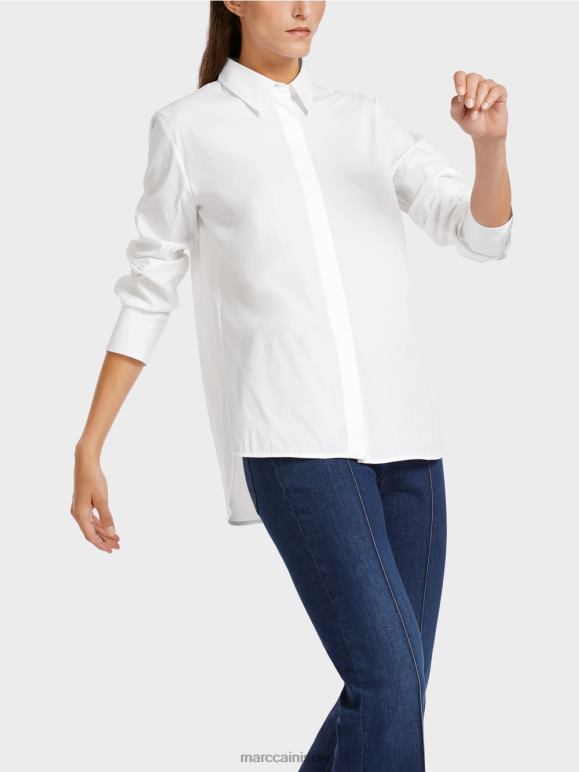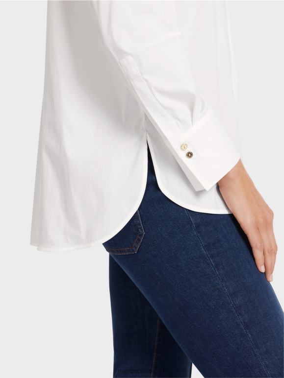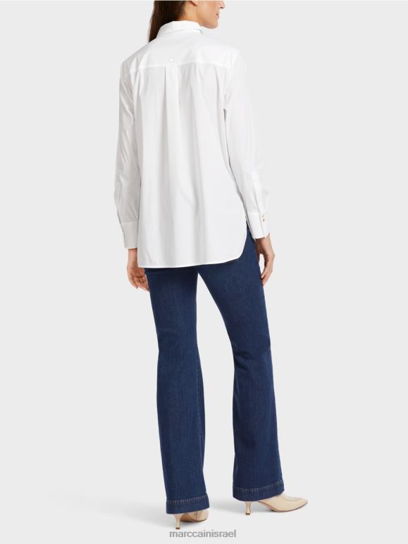 חולצה אלגנטית בתערובת כותנה עם אלסטן. שיק ועם זאת נינוח, חולצה זו משלבת סגנונות לבוש שונים. הוא כולל כיסום כפתורים סמוי, צווארון חולצה טיפוסי ושרוולים מחושלים, כל אחד עם שני כפתורים מבריקים בצבע זהב עם כיתוב Mc. זה מרגיש נינוח עם חתך ישר, חריצים בצד וגב ארוך יותר. קפל הקופסה מאחור מבטיח שהוא נוח ללבישה.