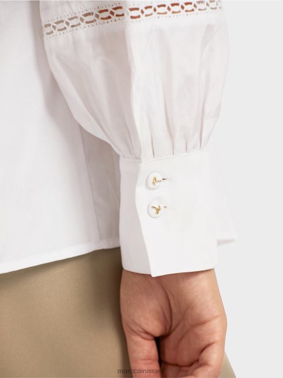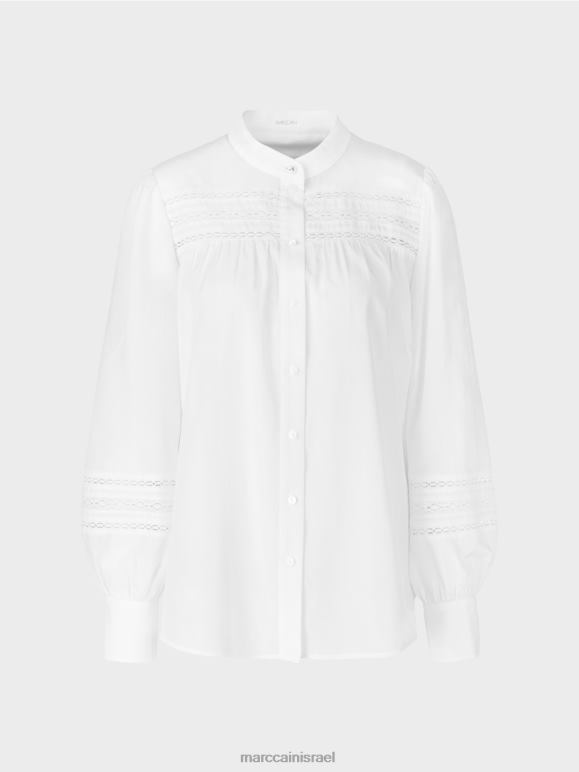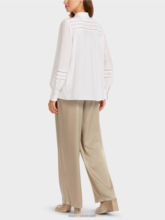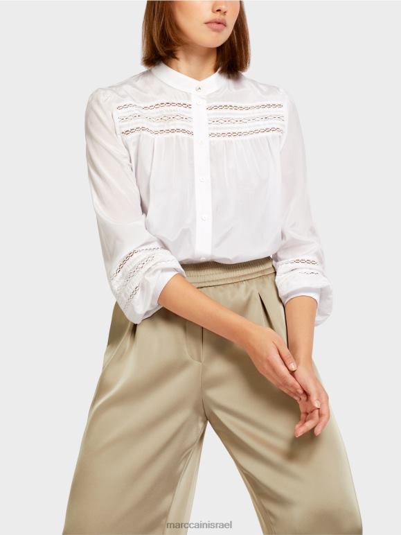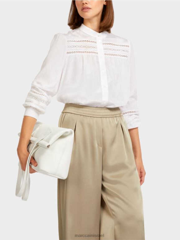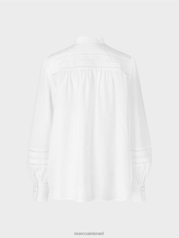 חולצה רומנטית בתערובת כותנה ומשי קלילה ואוורירית. עם גזרה קלאסית ברובה, החולצה מעוטרת בעיטורי תחרה עדינים ומעט אסוף מלפנים ומאחור. גם תפר הכתפיים אסוף מעט.