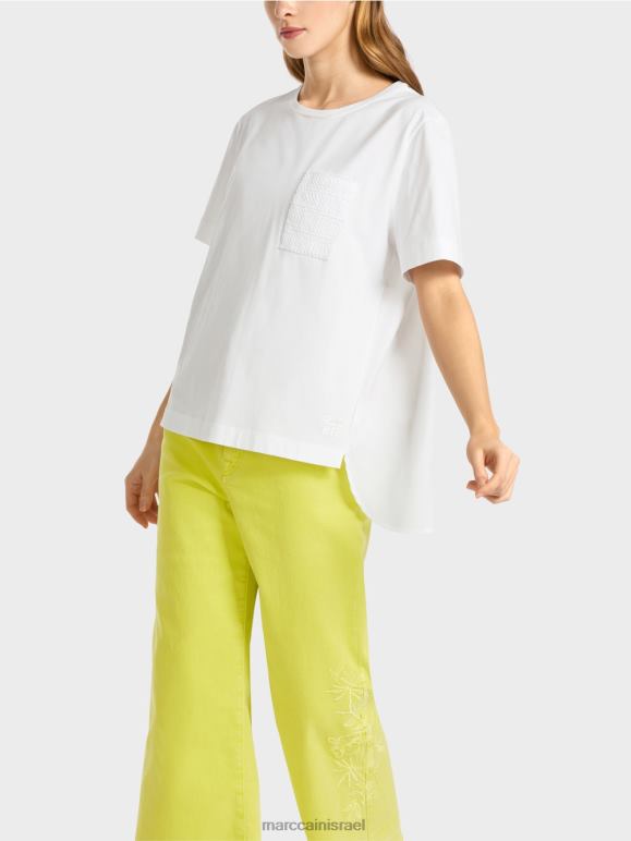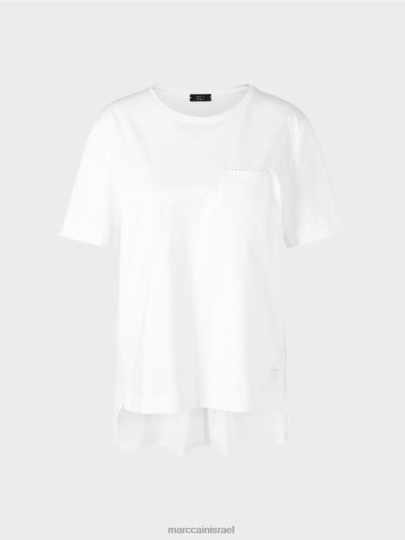 חולצת טריקו כותנה רפויה. חולצת טריקו זו תמשוך תשומת לב רבה עם תפרי הצד האלכסוניים שלה. יש לו גם אפליקציית רשת בצד שמאל של החזה. את הצללית יוצאת הדופן משלים הגב המעוגל והארוך יותר עם קפל קופסא וחרכי צד קצרים.