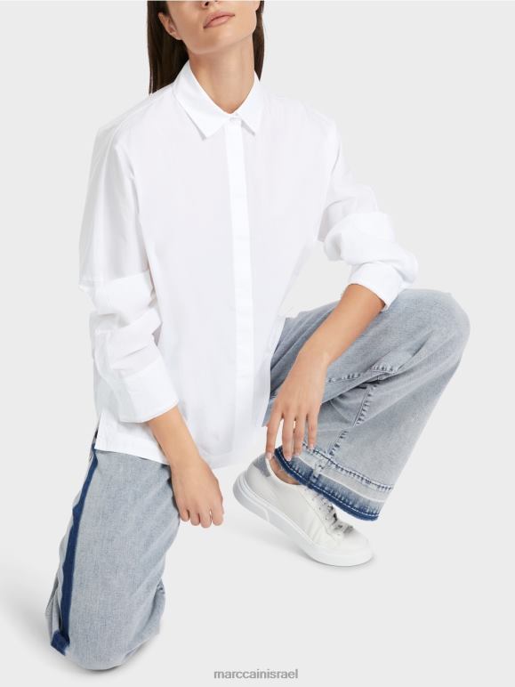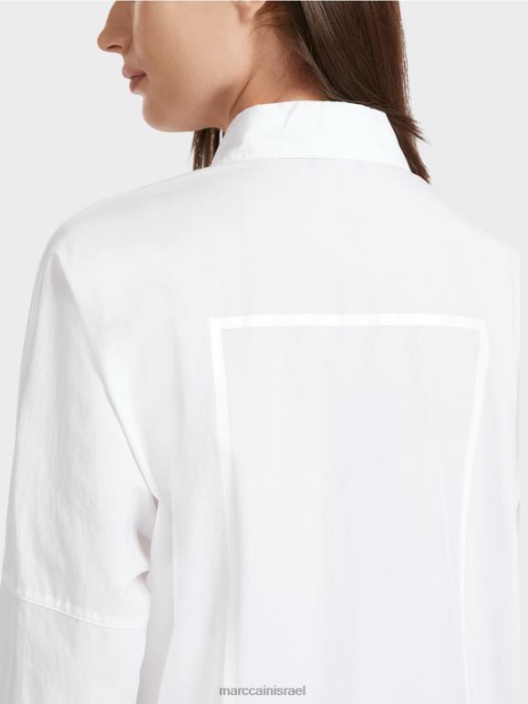 החולצה עשויה מכותנה אורגנית ונושאת את תווית הקיימות "לחשוב מחדש ביחד". מבחינה סגנונית, מסורות לבוש מערביות ומזרחיות נפגשות. גזרת הקימונו מוציאה את החומרה מצווארון החולצה ומכיסם הכפתורים הסמויים. המכפלת מודגשת על ידי התפרים הבולטים וחרכי הצד. בחלק האחורי, לחולצה מוטיב הדפס מינימליסטי.