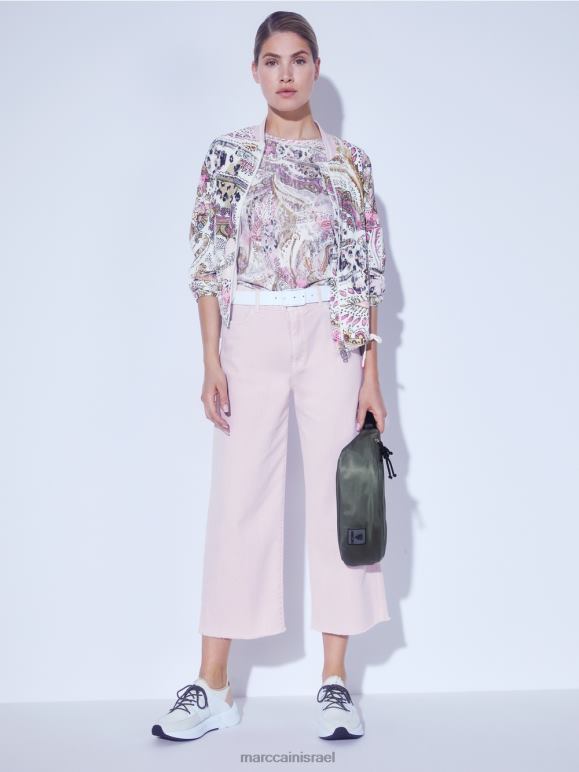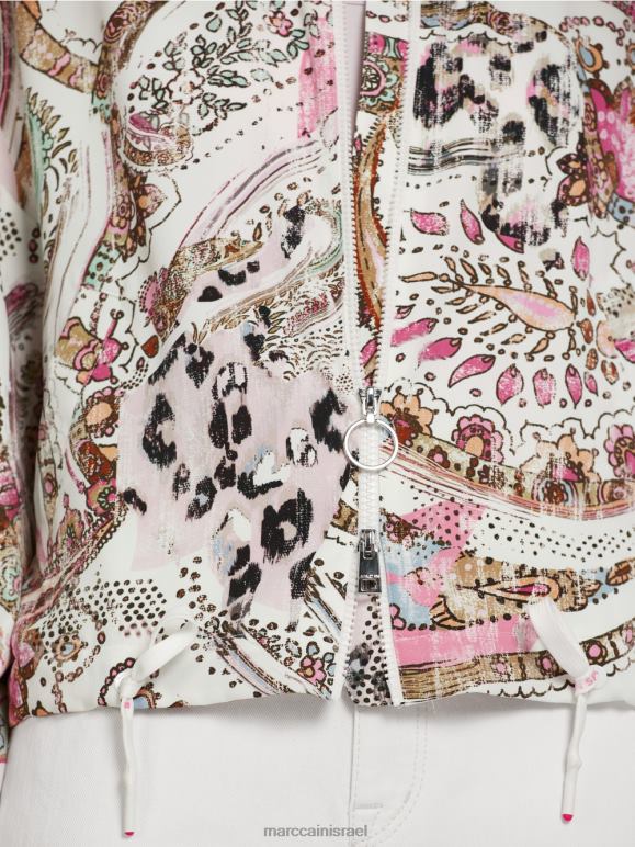 הבלוסון עשוי מחומר רך ליצירת צללית חובקת דמות. השרוולים נמוכים וניתן לכוונן את הרוחב בשוליים בעזרת שרוך. צווארון הסריג המצולע הספורטיבי והבטנה ברשת רכה מנוגדת לדפוס הפייזלי האלגנטי. פרטים פונקציונליים כוללים את הרוכסן, כיסי רצועות חתוכים בחזית וחפתים אלסטיים.