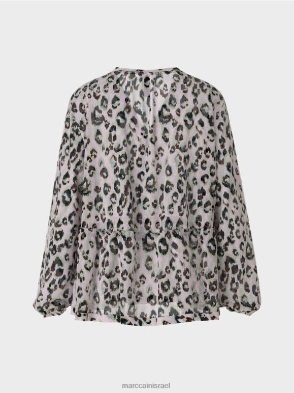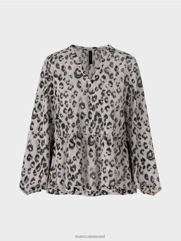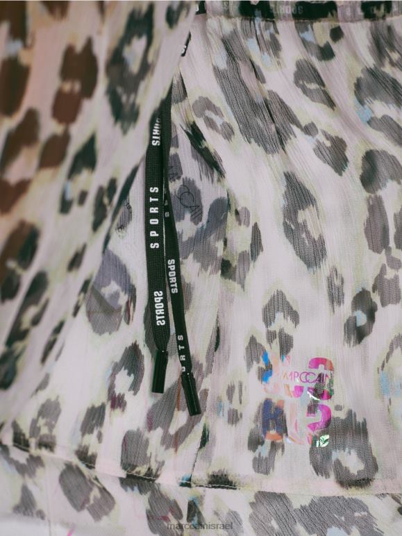חולצה מדורגת עם הדפס נמר. קרפ הוויסקוזה הבהיר בא לידי ביטוי עם הגזרה הרופפת והשרוולים הנמוכים שלו. שכבת התיקון עם אפקט סלסול מוסיפה מגע שובב. המכפלת מעוטרת בפלונים עדינים. הוא כולל גם כפכפים על צווארון ה-V. השרוולים גמורים עם עיטור אלסטי.