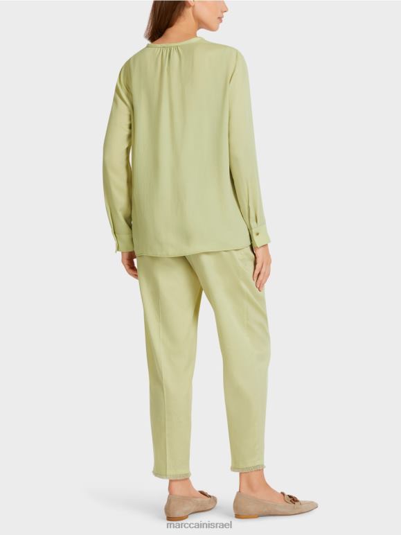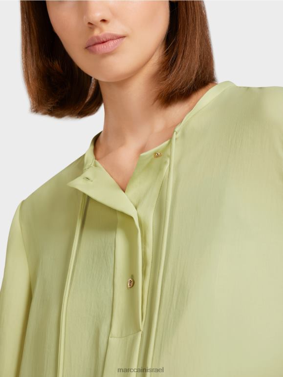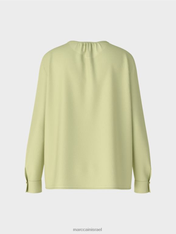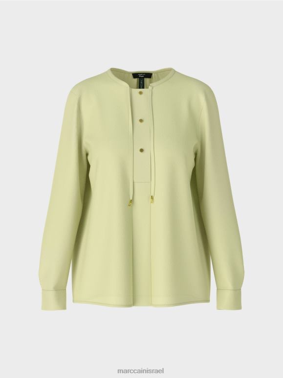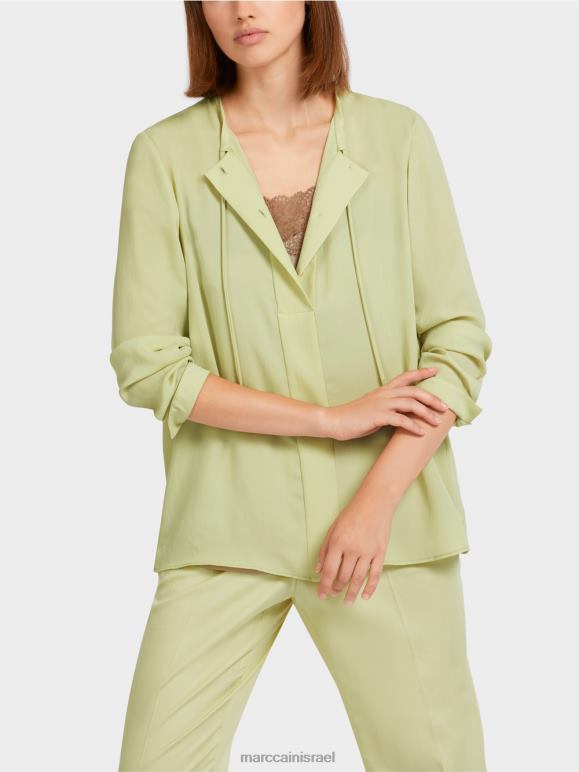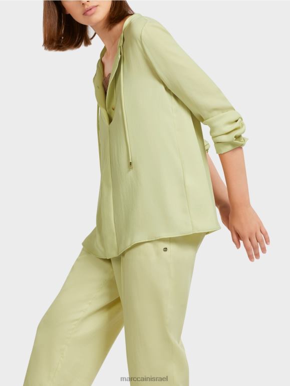 עיצוב מינימליסטי. החולצה האלגנטית הזו עשויה מתערובת עם פוליאסטר ממוחזר ונושאת את תווית הקיימות "לחשוב מחדש ביחד". מנהרת שרוך משולבת בקו הצוואר כך שניתן להדק אותה בסרטים. כיסון הכפתורים מופעל על ידי הכפתורים הדקורטיביים שלו. החולצה אסוף מעט מאחור.