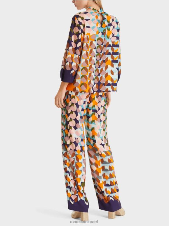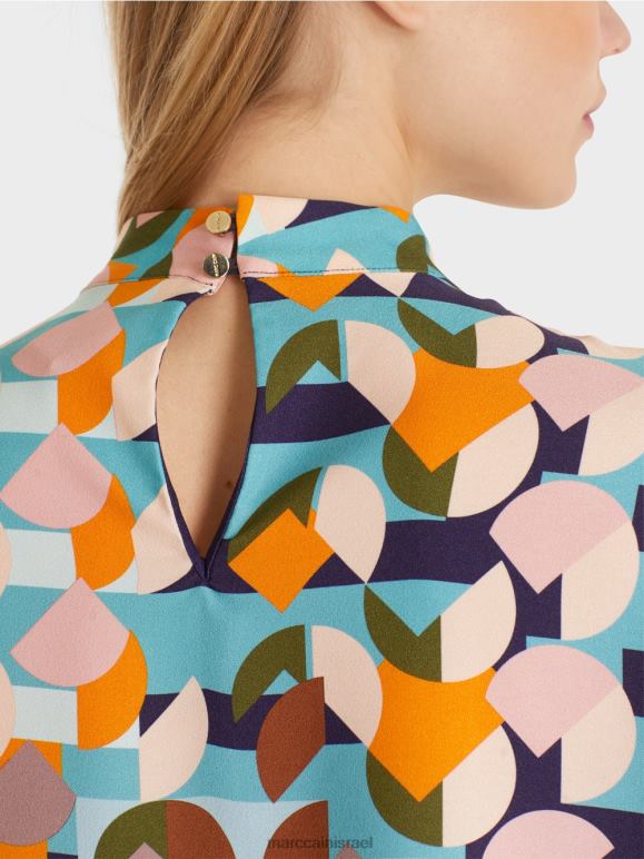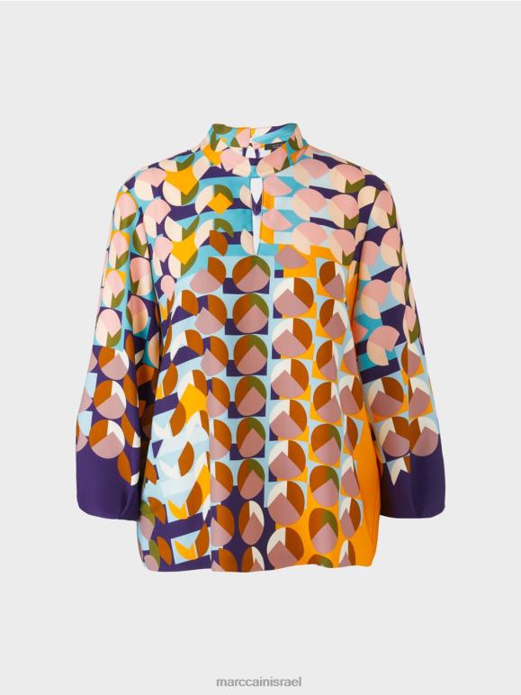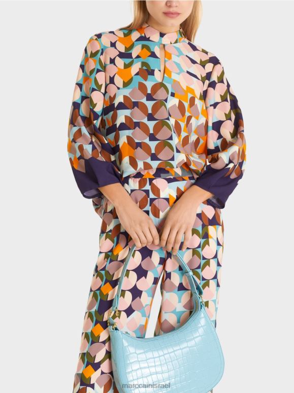 חולצת החולצה מרשימה עם הדוגמה הגרפית העשירה. הפריט חתוך בצורה רופפת ומגיע עם שרוולים רחבים באורך שלושת רבעי. שני כפתורי לוגו קטנים בזהב בהיר ממוקמים בצוואר.