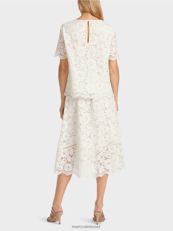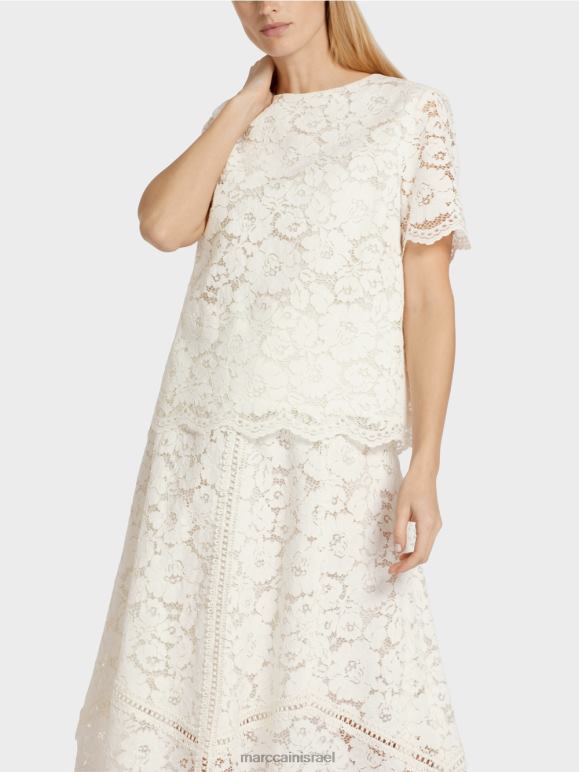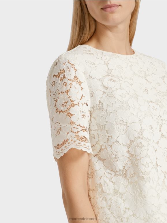 הגזרה הפשוטה של החולצה הזו מזכירה את הסגנון של שנות ה-50: גזרה ישרה, צווארון צוואר ושרוולים קצרים. התחרה הפרחונית מוגמרת בשוליים עם שוליים. הבטנה החלקית הופכת את החולצה לאטומה. הוא ננעל עם כפתור בודד מאחור.