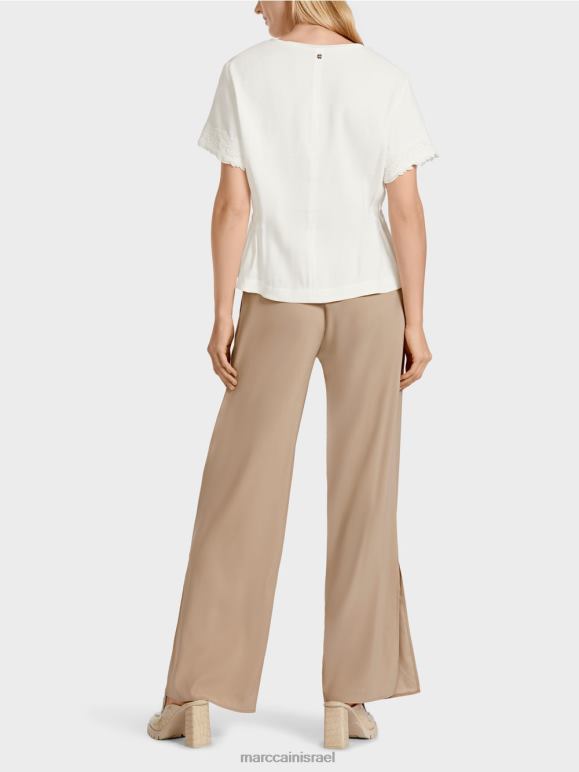 דגם זה משלב את הפשטות של חולצת טריקו עם מראה משובח של חולצה. פרטים אתניים כוללים את הקפלים במותניים ואת עיטור התחרה בשולי השרוול. החולצה עשויה בתערובת של פשתן וויסקוזה, המעניקה לה תחושה קלילה וקרירה על העור.