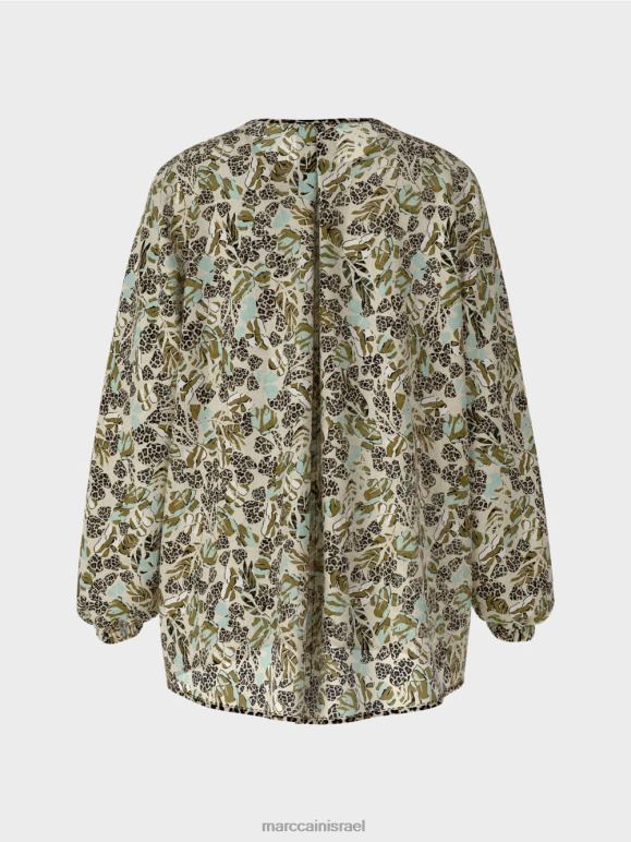 עליונית פשוטה בסגנון חולצה בקרפ ויסקוזה. המלאות נוצרת מאחור הנאספת מתפר האוכף. הדפוס הדמיון שואב השראה ממוטיבי החי והצומח. עיטור ההדפס הנמר על כיס הכפתור, קו הצוואר והשוליים מעניקים לעיצוב מגע סיום מסוגנן.