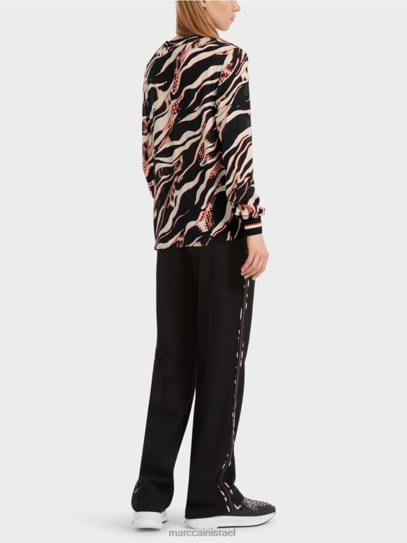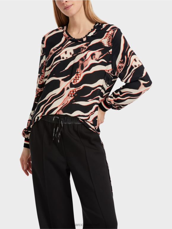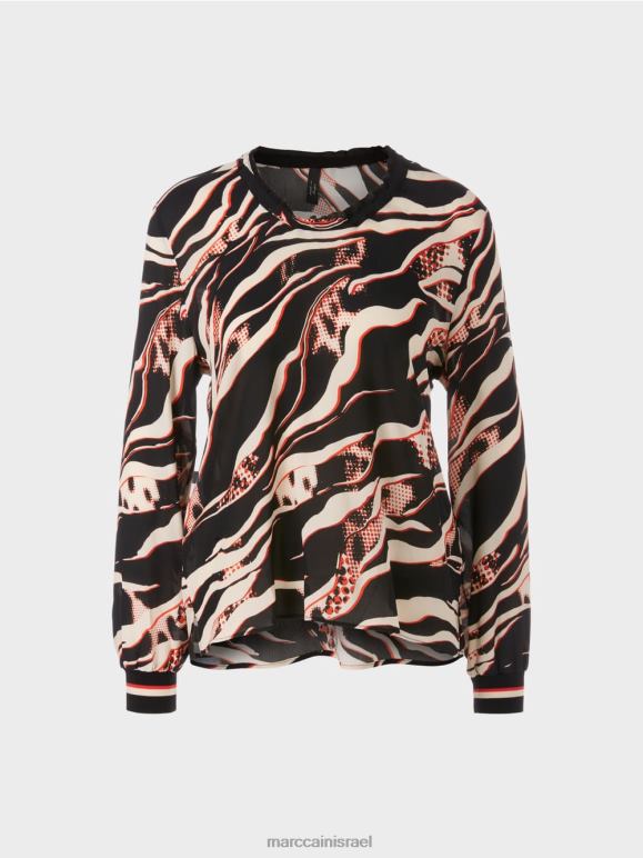 החולצה עשויה ויסקוזה טהורה וזורמת. הגזרה רחבה והכתפיים חופפות. קו הצוואר אסוף ובעל גפת מרומזת. השרוול מהודק עם שרוול סרוג. הדפס אריה יעיל בשל הרזולוציה הפוקסלת הגסה חלקית וסכמת הצבעים.