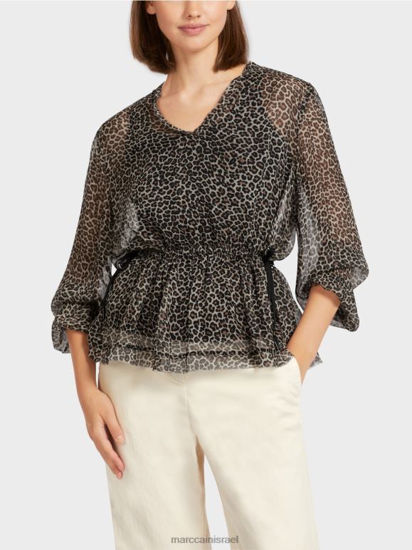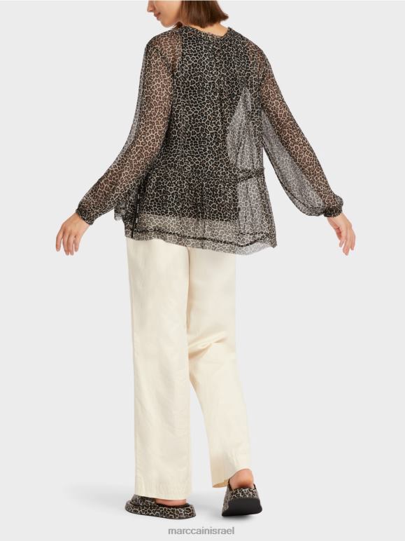 החולצה הזו היא גדולה מדי ועשוי מקרפ ויסקוזה עדין במיוחד. ניתן להתאים את הרוחב באמצעות השרוך במותניים. גם השרוולים רפויים ומסתיימים עם שרוך אלסטי. צווארון ה-V והמכפלת מסיימים בגימור עם גימור קצה גולמי.