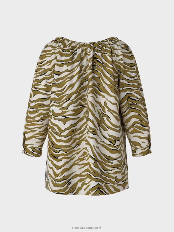 שמלת הטוניקה הזו כוללת שרוולי ראגלן והיא קלה ללבישה וללבישה. העיצוב נקי - הדפס הנמר המסוגנן בצבע בולט נותן לו את אפקט הוואו שלו. יש דוגמאות מנוגדות על החריץ בתפר הצד ובחלק הפנימי של השרוול. בגד זה עשוי מכותנה אורגנית ונושא את תווית הקיימות "לחשוב מחדש ביחד".