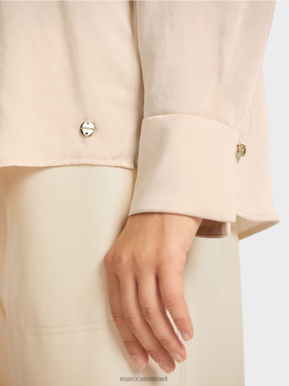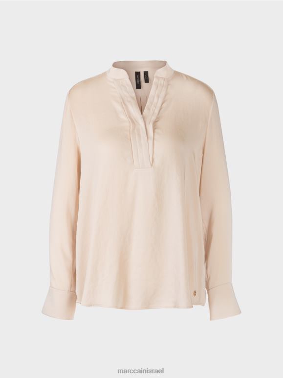 החלק העליון בסגנון חולצה רגיל מגיע בגזרה נינוחה עם קפלים מאחור להקלות של תנועה. קו הצווארון המוצלב גמור בתפרי קווילט מקבילים ומתמזג לצווארון סטנד-אפ קטן. החולצה מעוצבת עם שרוולים מכופים. המכפלת המעוגלת מתארכת מאחור וכוללת לוגו מתכת של Mc בחזית.
