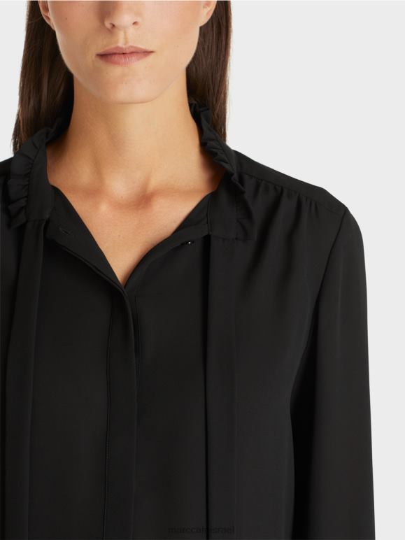 החולצה הזורמת שובה לב במראה הנשי שלה. הצווארון מעוטר עם סלסולים קטנים, וניתן להפוך את הלולאה הצרה לקשת יפה. חפתים אלגנטיים עם שני כפתורים, כיסום הכפתורים הסמוי והגב המוארך מעט משלימים את העיצוב.