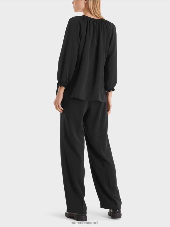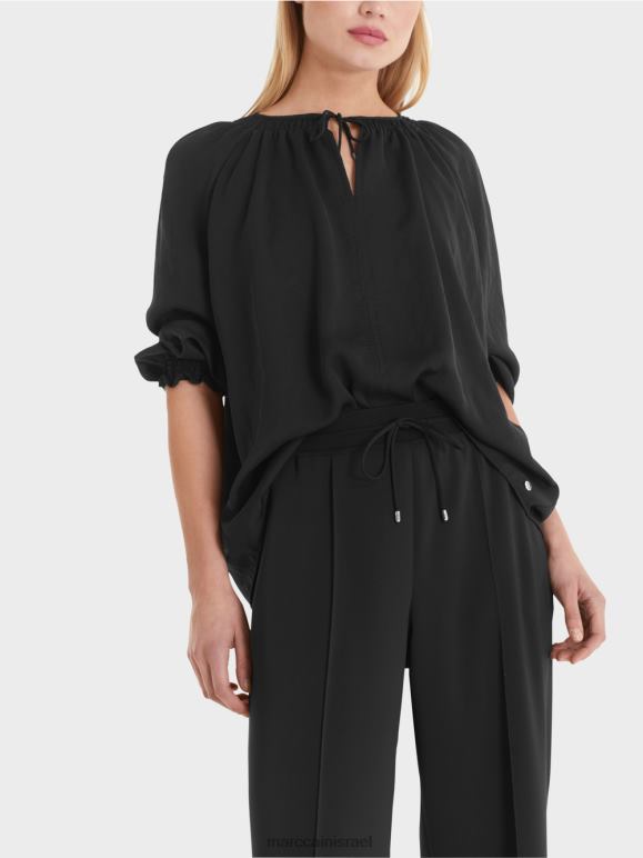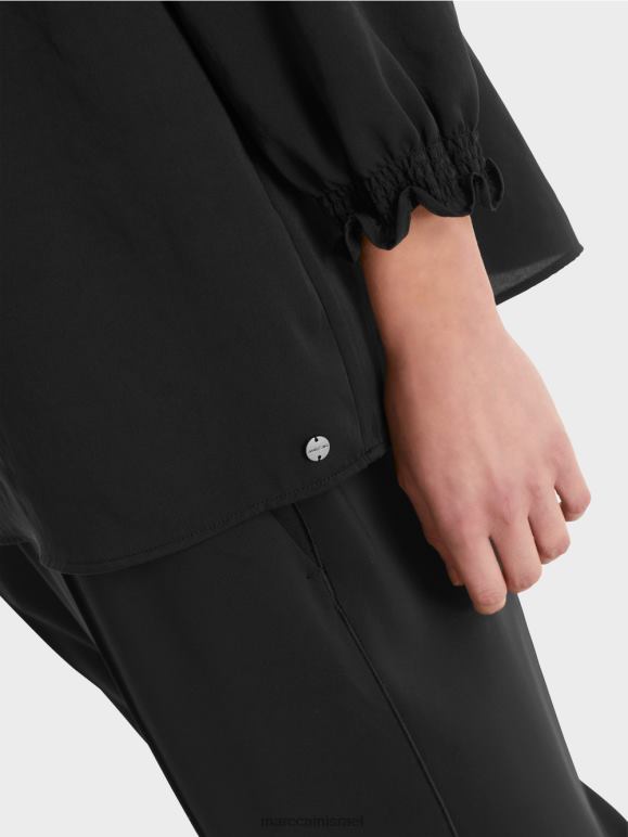 החולצה הנשית הזו נושאת את תווית הקיימות "לחשוב מחדש ביחד" והיא עשויה ממוחזרים פּוֹלִיאֶסטֶר. פרטים מעוטרים בקו הצוואר והחפתים מדגישים את המראה. תפרים באופטיקה של תפר יד קובעים הדגשים מיוחדים.