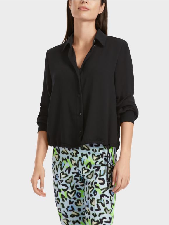 החולצה עשויה מבד נופל ברכות. לעיצוב יש את הרגע שלו בשולי השרוך. זה מאפשר וריאציות אפקטיביות. השרוולים מסתיימים עם חפתים סרוגים. הגב פתור דמוי חולצה עם עול כתף וקפל.