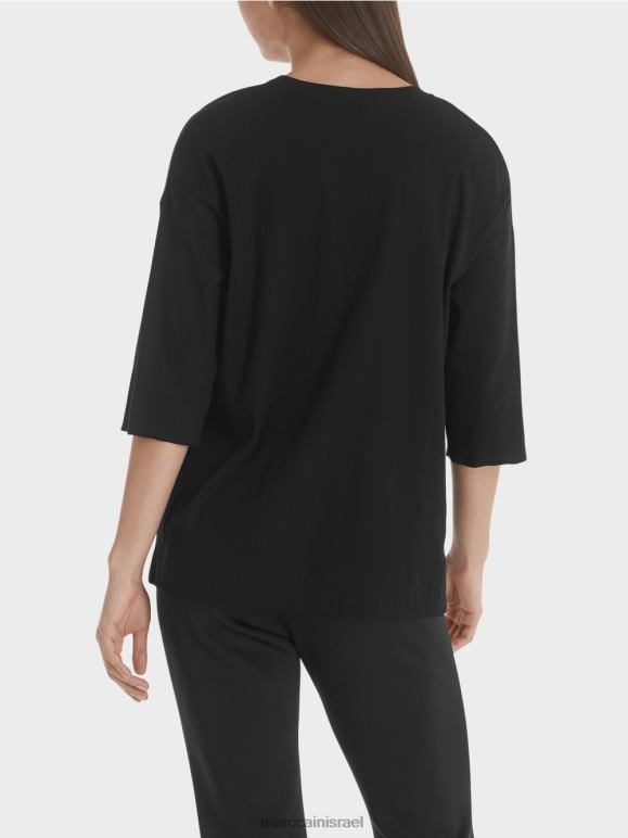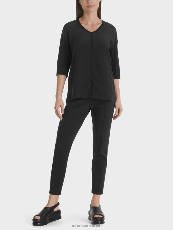 חולצת חולצה מסוגננת עם צללית נינוחה, כתפיים חופפות לא פשוטות ושרוולים בחצי אורך שניתן להפשיל בקלות. חולצת החולצה מציגה את עצמה עם שילוב מרגש של חומרים: הגב והשרוולים המוארכים מעט עשויים מג'רזי מצולע כותנה נוחה, בעוד שהחלק הקדמי עשוי מאיכות מיקרופייבר מנצנץ ברכות.