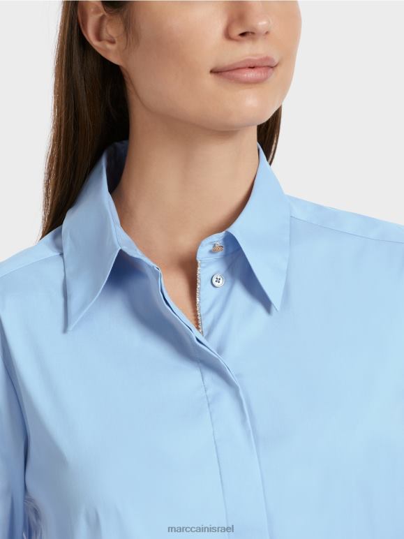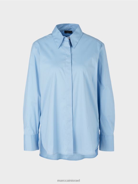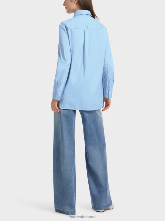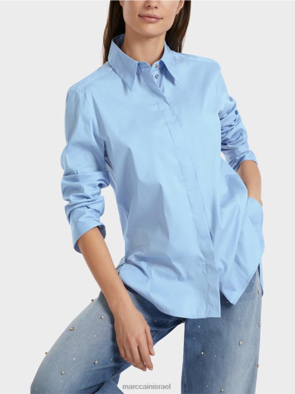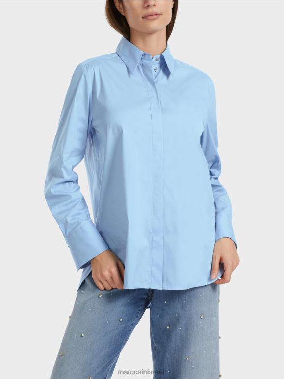 חולצה בצבע רגיל עם תערובת חומרים של כותנה ואלסטן. החולצה הזו מציגה את עצמה בצורה קלאסית עם צווארון החולצה שלה וכיסום הכפתורים הנסתר. שרוולי השרוול הרחבים מסיימים עם כפתור דקורטיבי מבריק. הודות לקפל הצביטה מאחור, החולצה מקבלת רוחב נעים. פרטים משלימים כוללים צידי שסע וגב מורחב.