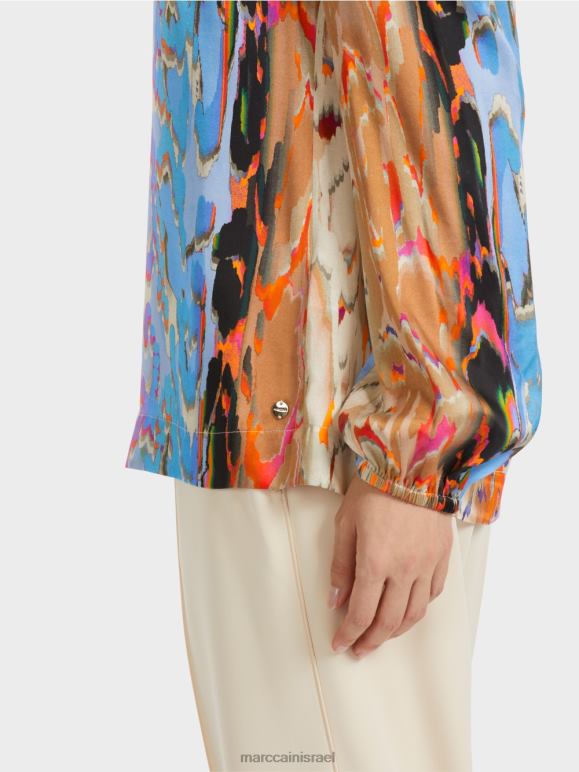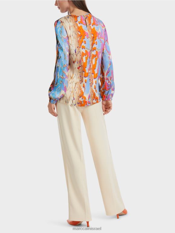חולצה רפויה עשויה ממשי משובח. עם העיצוב הססגוני שלה, החולצה הזו היא לוכדת עין נהדרת. יש לו צווארון עגול הננעל עם כפתור מאחור. שרוולים רחבים עם חפתים אלסטיים צרים משלימים את המראה.
