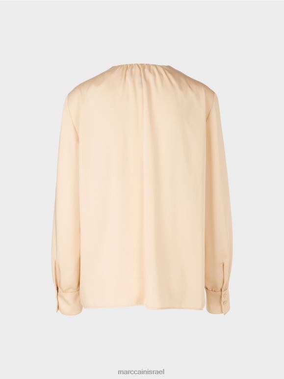 החולצה הזו עשויה מחומר רך וזורם, והיא זוכה לצווארון V ספורטיבי. הסגנון מודגש על ידי תפר דקורטיבי בחזית. לחולצה יש רוחב סתמי. הפרטים הנשיים כוללים שרוולים עם חפתים עם כפתורים מבריקים וכיתוב מבריק של מארק קין בקו הצוואר.