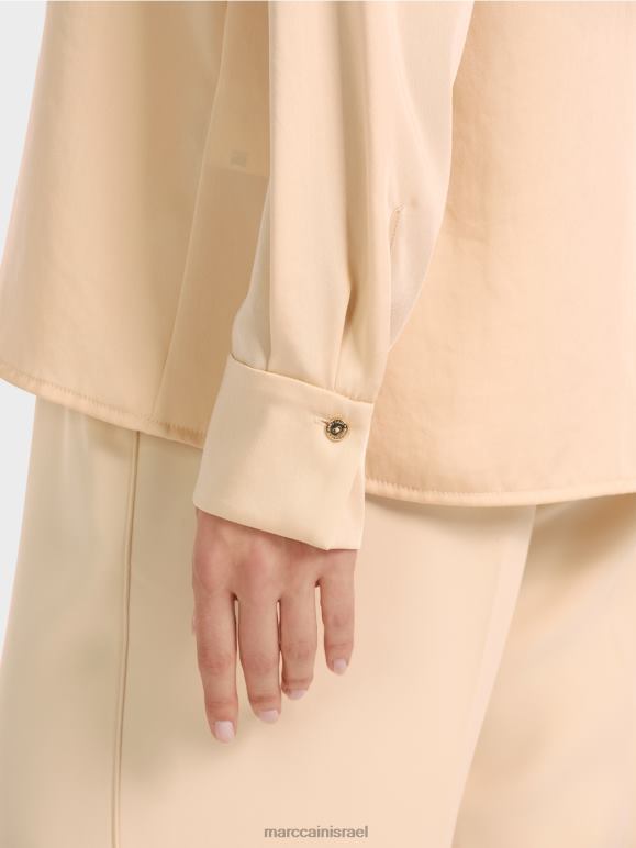 חולצת חולצה בגזרה קלאסית עשויה מחומר זורם רך ונעים. החולצה הפשוטה הזו היא בסיס אידיאלי לכל מיני אירועים. הוא כולל כיסום כפתורים, שרוולים מחושלים ומגיע עם צווארון V אופנתי. קפל קמצוץ מאחור מוסיף רוחב ונוחות.